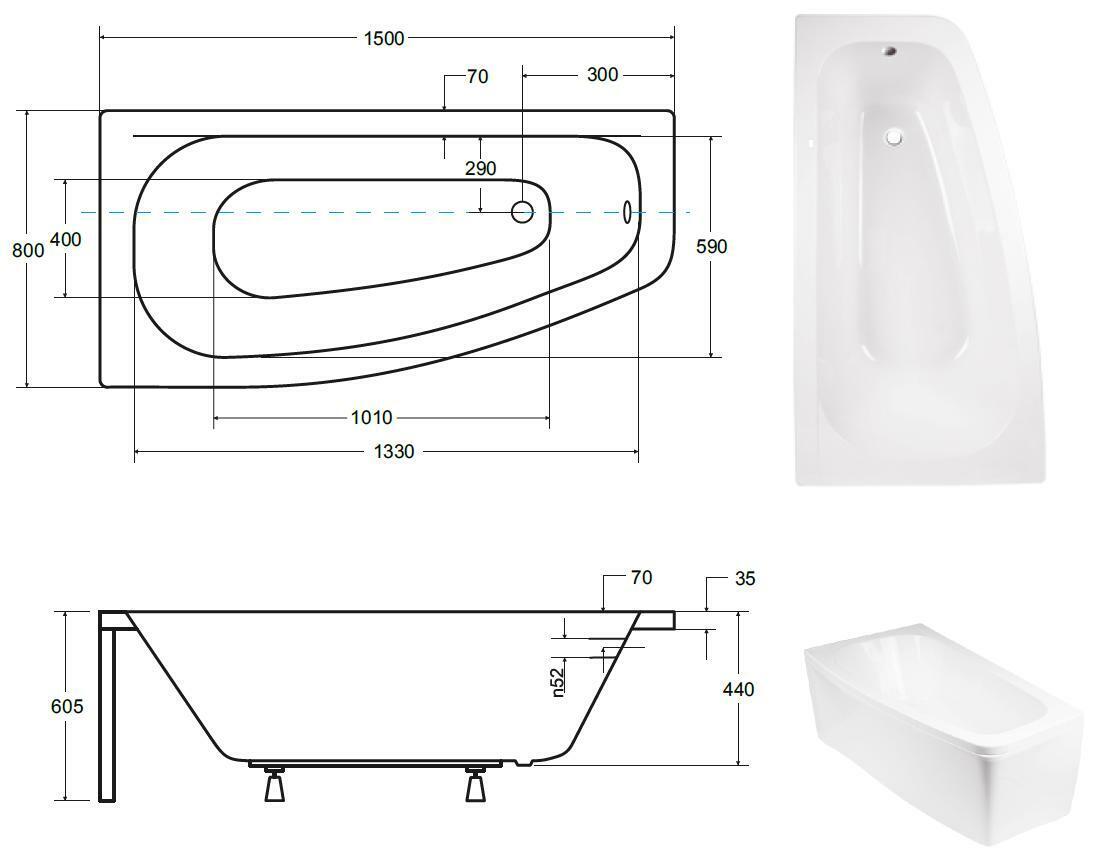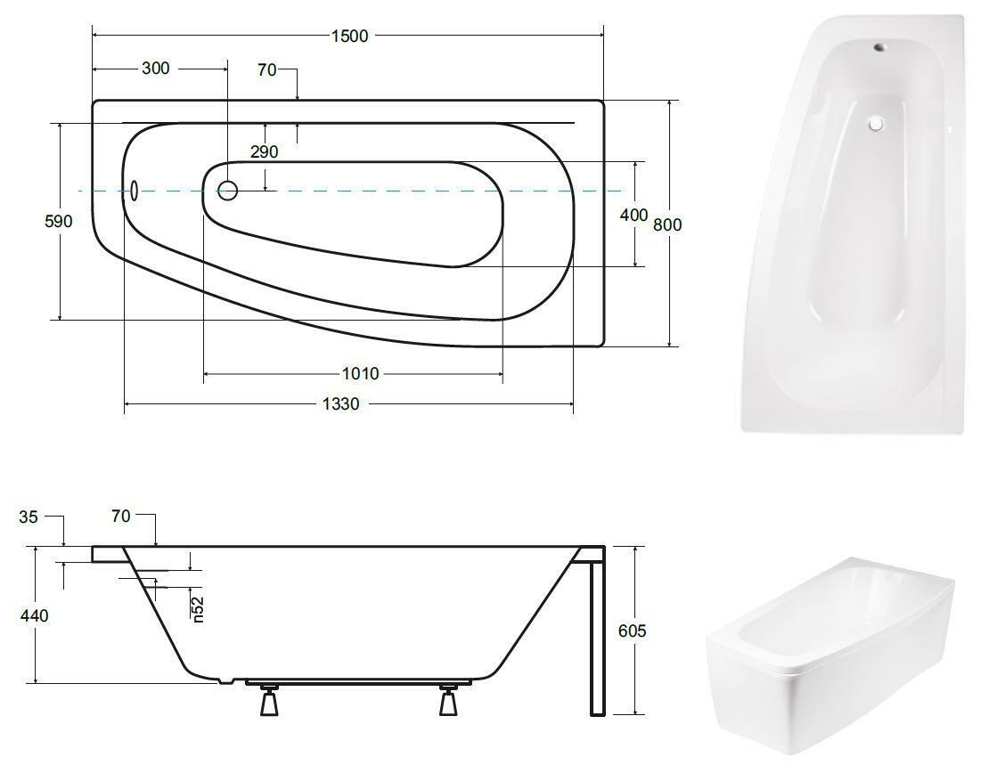 Badezimmer Rechteckige Eck Wannen Badewannen Weiß abgerundete Eckwanne Wanne Neu