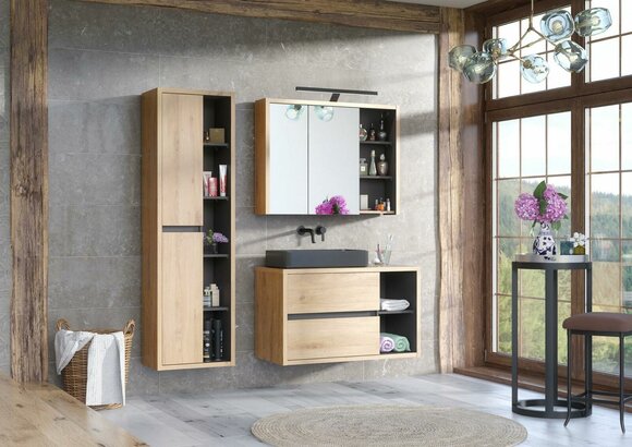 Verschönern Sie Ihr Badezimmer mit diesem stilvollen 3-teiligen Set von XL Moebel! Das Design Badezimmer Möbel Bad Set besteht aus einem Waschtisch, einem Schrank und einem Spiegelschrank, alles aus hochwertigem Holz gefertigt. Die Maße sind perfekt abgestimmt: Der Waschtisch misst ca. 100 x 59,8 x 45,5 cm, der Schrank ca. 50 x 170 x 35 cm und der Spiegelschrank ca. 100 x 75 x 18 cm. Optional können Sie eine freistehende Armatur, einen passenden Siphon sowie passende Kopfstützen hinzufügen. In der Farbe wie abgebildet wird dieses Set zum Blickfang in Ihrem Badezimmer. Gönnen Sie sich dieses exklusive Set und lassen Sie sich von XL Moebel inspirieren!