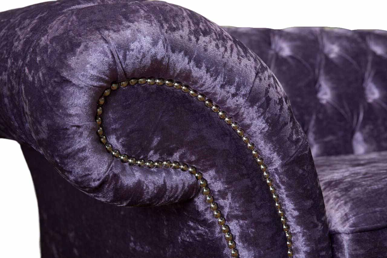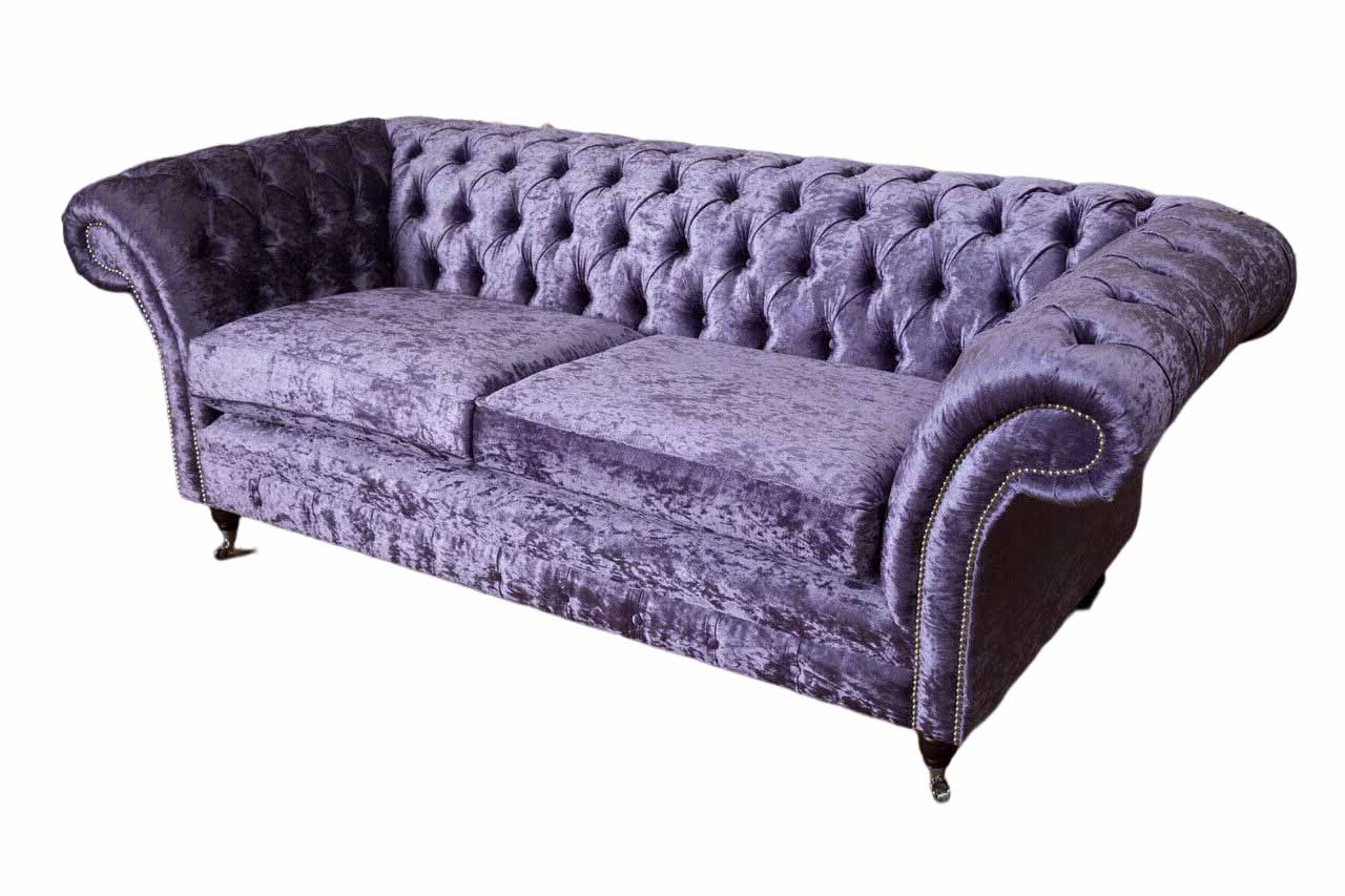 Chesterfield Dreisitzer Sofa 3 Sitzer Wohnzimmer Sofa Lila Stoff Couch