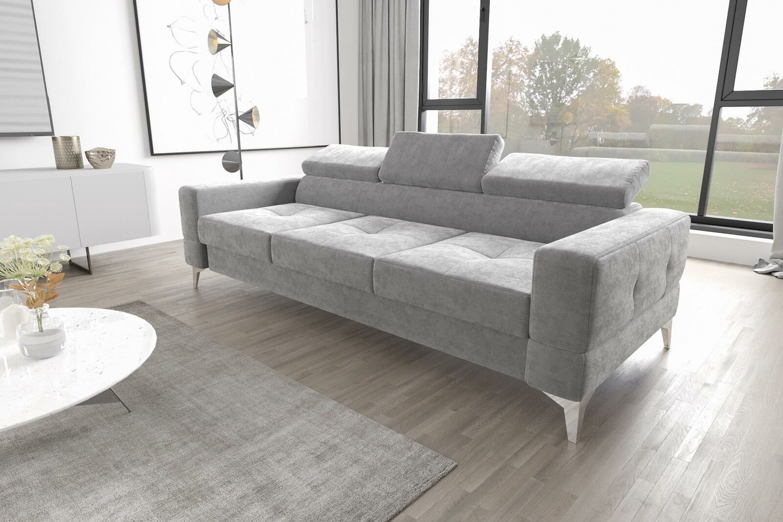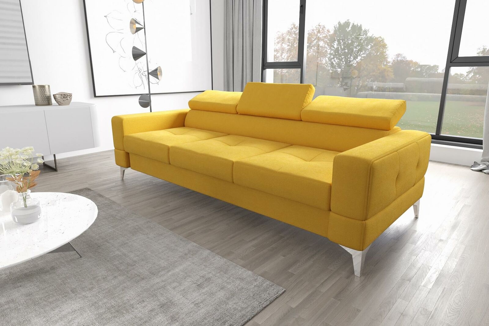 Erleben Sie pure Gemütlichkeit mit unserem Dreisitzer Couch Polster Design Sofa in modernem Rosa! Dieses stilvolle Möbelstück ist nicht nur bequem, sondern auch ein echter Blickfang in Ihrem Wohnzimmer. Mit Maßen von ca. 250 x 97 x 78/95 cm bietet das Sofa genügend Platz für entspannte Abende allein oder mit Ihren Liebsten. Das Highlight dieses Sofas ist die freie Farbwahl, die es Ihnen ermöglicht, das Sofa ganz nach Ihrem persönlichen Geschmack zu gestalten. Zudem haben Sie die Möglichkeit, zwischen verschiedenen Materialien wie Stoff oder Premium Kunstleder zu wählen, um Ihren individuellen Komfort zu optimieren. Das Innengestell aus echtem Holz mit Federkern sorgt für Stabilität und Langlebigkeit. Optional können Sie das Sofa mit einem praktischen Bettkasten und gegen Aufpreis mit einer Unterboden LED Beleuchtung ausstatten, um Ihr Wohnzimmer in eine Wohlfühloase zu verwandeln. Machen Sie Ihr Wohnzimmer mit diesem modernen und komfortablen Dreisitzer Sofa zu einem Ort der Entspannung und des Stils. Bestellen Sie jetzt und tauchen Sie ein in eine Welt des Wohlfühlens!
