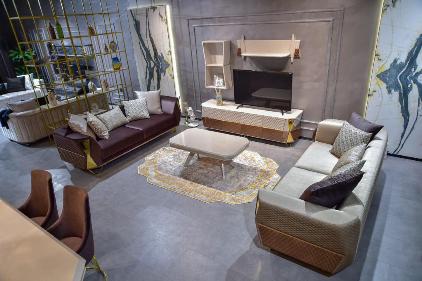 Ausgefallenes Sofa Wohnzimmer Dreisitzer Couch Polster Möbel Stoff 3er