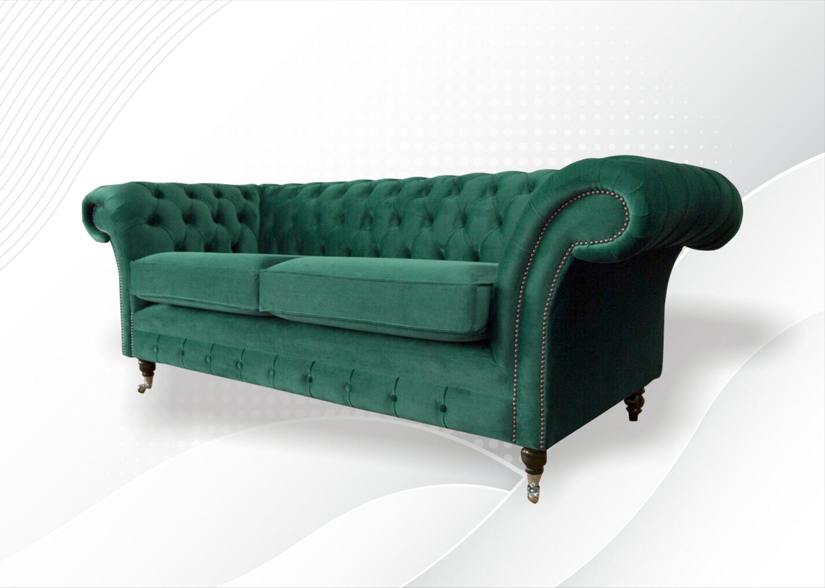 Chesterfield 3 Sitzer Grün Wohnzimmer Modern Design Couchen Sofa Original Textil