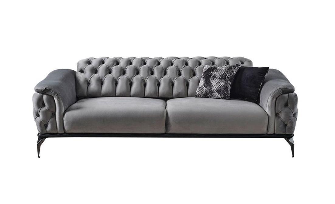 Designer Sofa 3 Sitzer Chesterfield Couch Polster Sofas Design Grau Sitzpolster