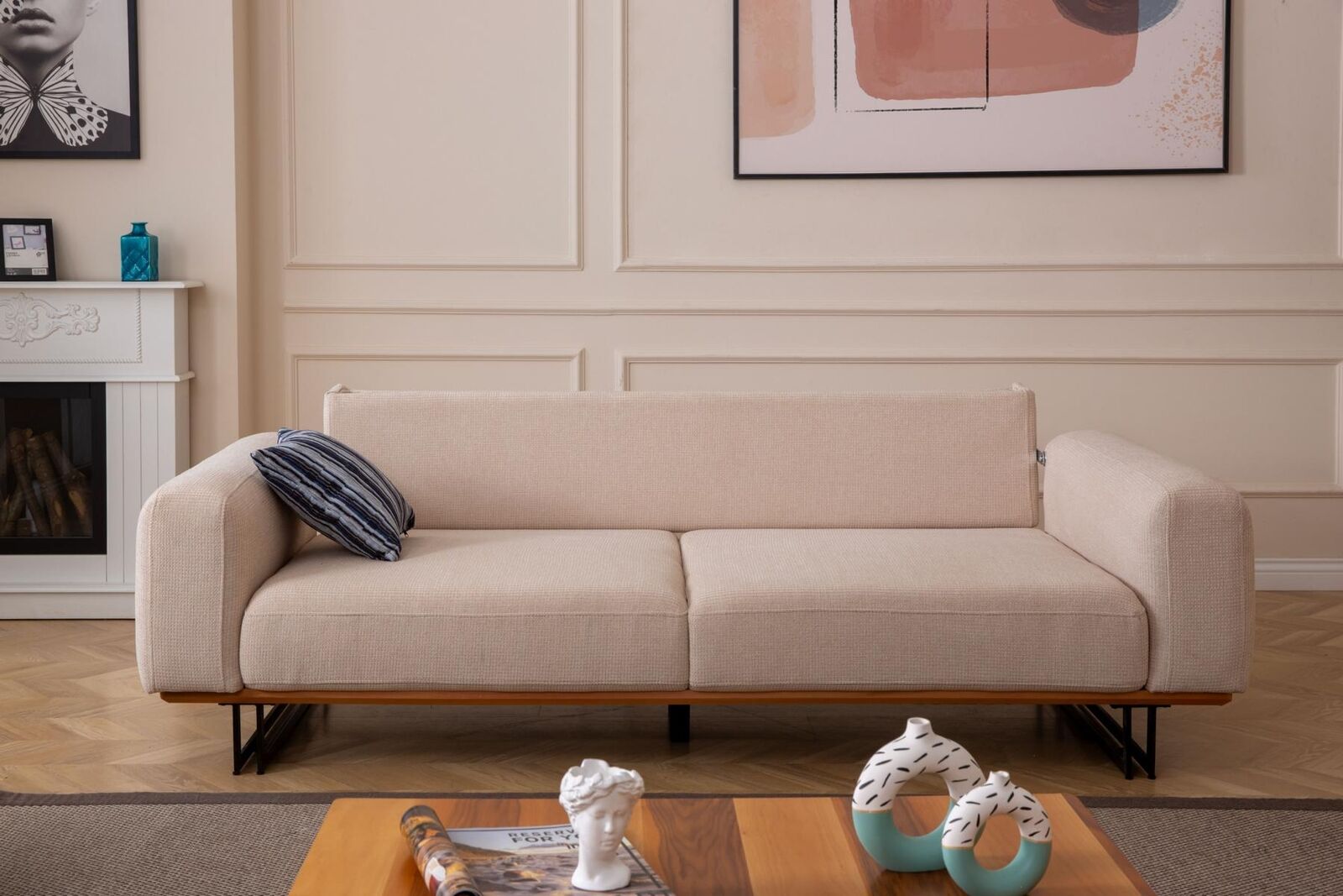 Designer Sofa 3 Sitzer Polster Textil Modern Polster Beige 230cm Couchen