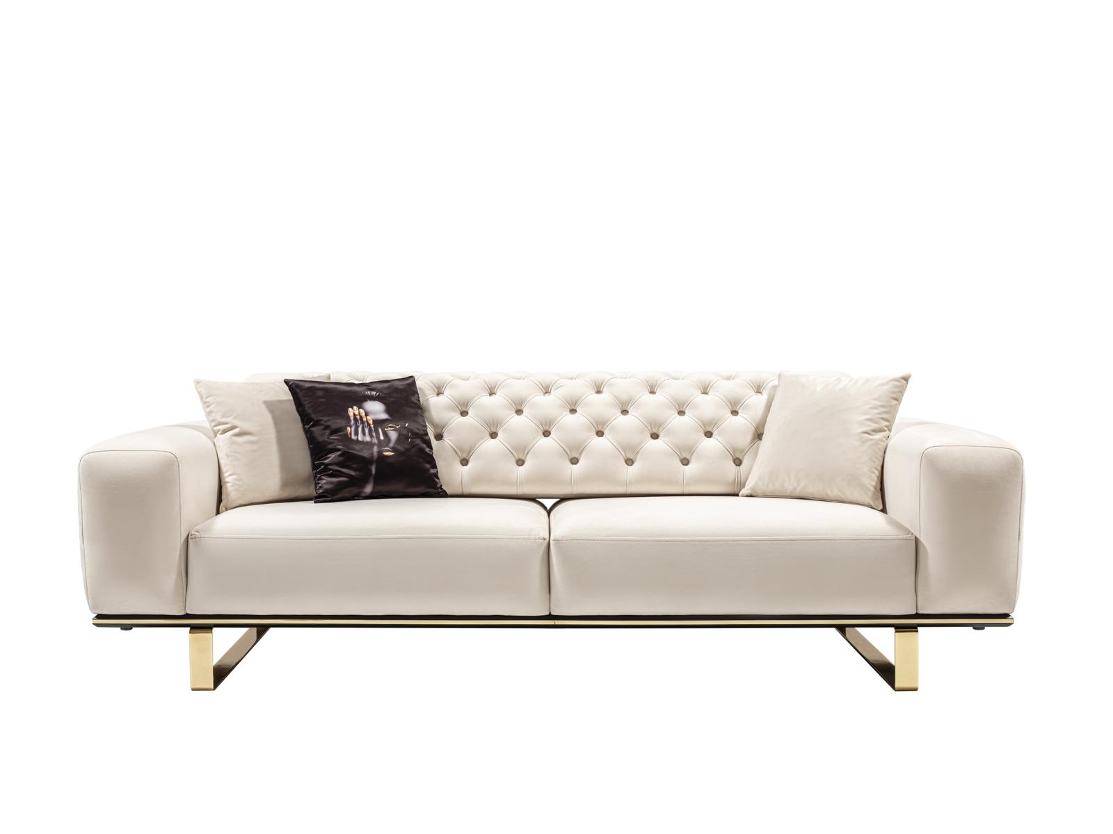 Dreisitzer Chesterfield Sofa 3 Sitz Sofas Weiß Stoff Wohnzimmer Luxus