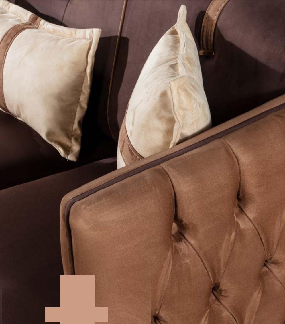Dreisitzer Sofa 3 Sitzer Sofas Sitz Stoff Modern Stil Textil Couchen Möbel Braun