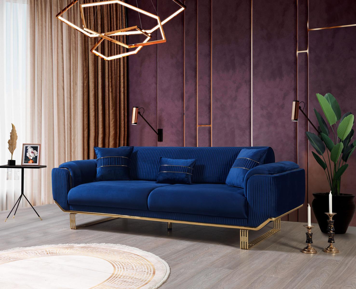 Luxus 3 Sitzer Sofa Wohnzimmer Blau Sofas Design Modern Couch Möbel