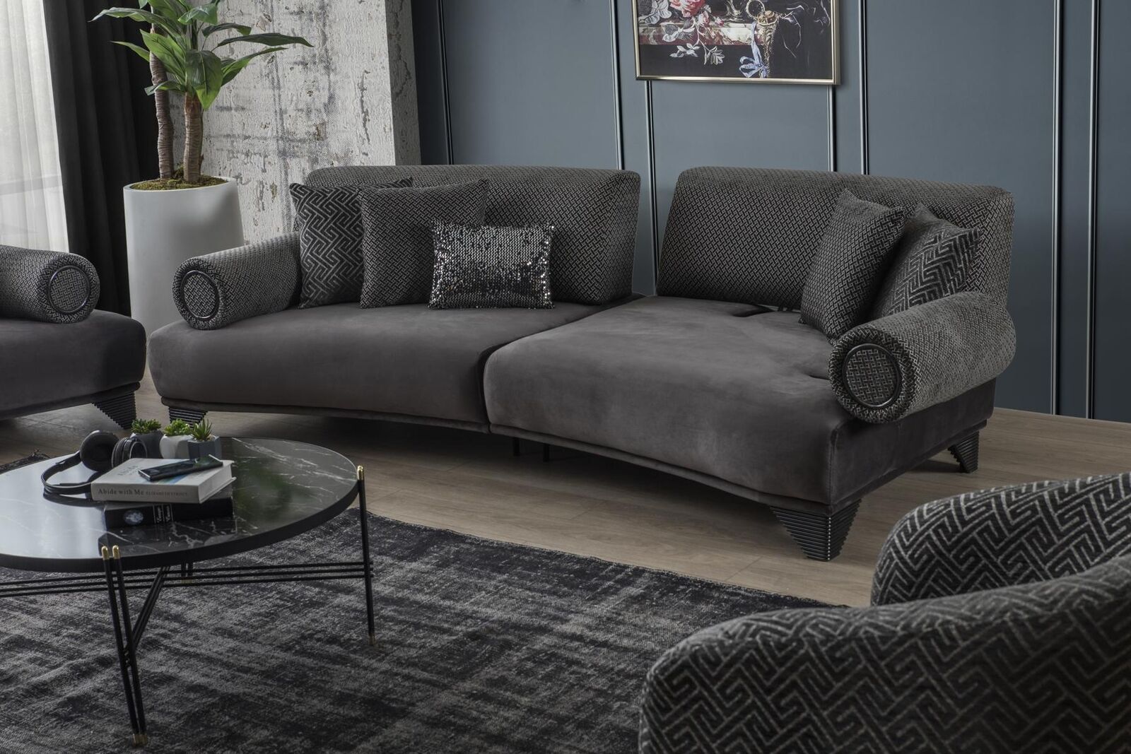 Luxus Sofa Dreisitzer 3 Sitzer Sofas Wohnzimmer Gebogene Couch Stoff Design Neu