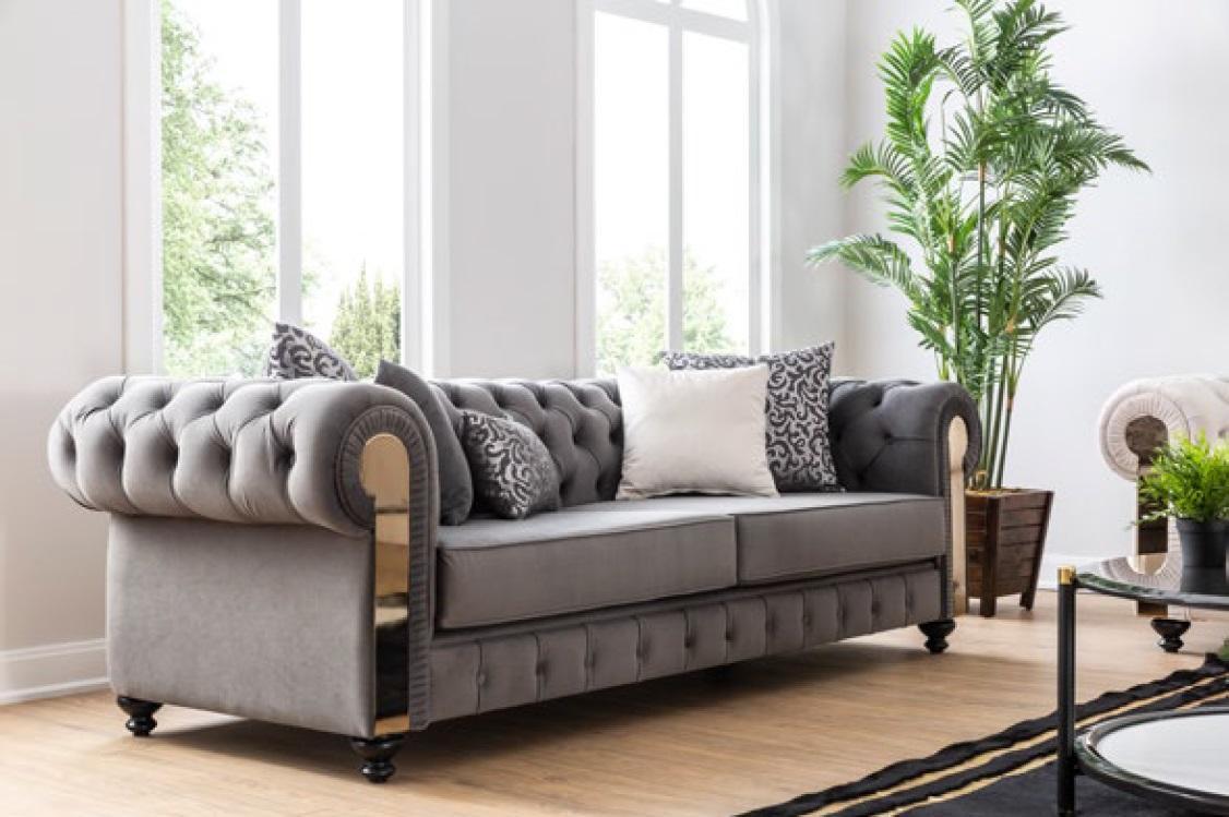 Luxus Wohnzimmer Sofa 3 Sitz Dreisitzer Grau Chesterfield Klassische Couchen