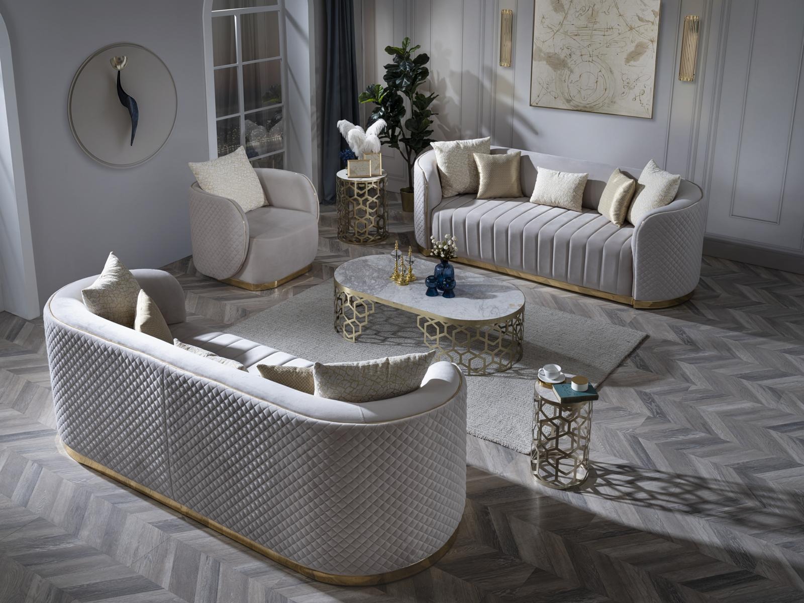 Ovale Couch Dreisitzer Couchen Möbel Sofa Einrichtung Wohnzimmer Samt