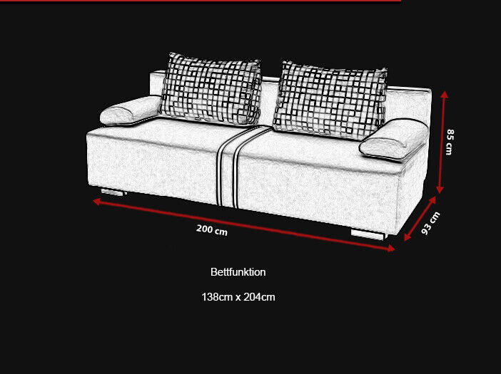 Schlafsofa 3-Sitzer mit Schlaffunktion, Bettkasten und Klappcouch - Designer Sofa