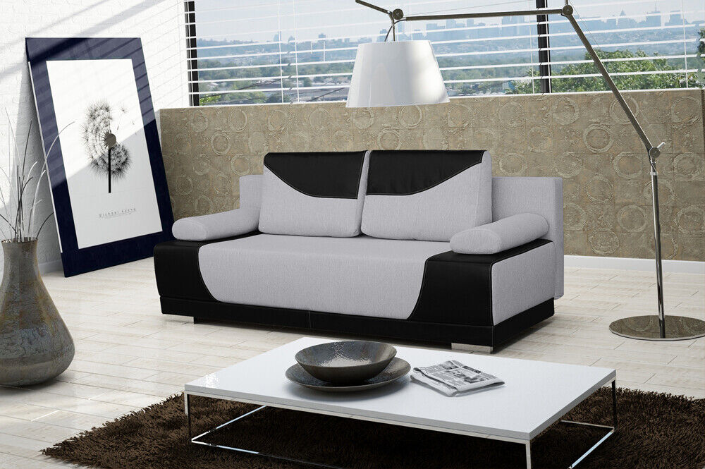Schlafsofa Klappcouch 3-Sitzer Schlaffunktion + Bettkasten Couch Designer Sofa