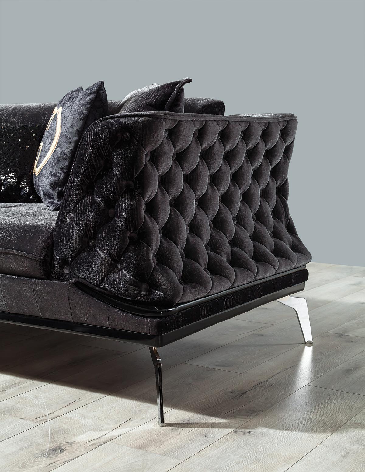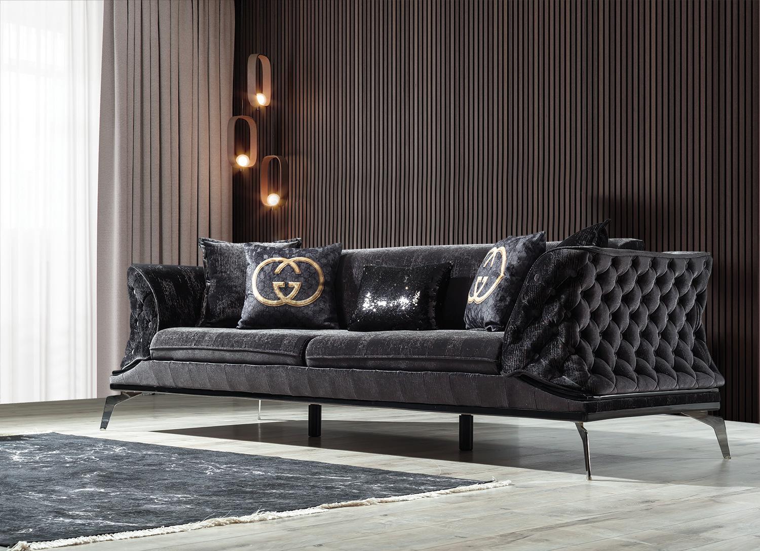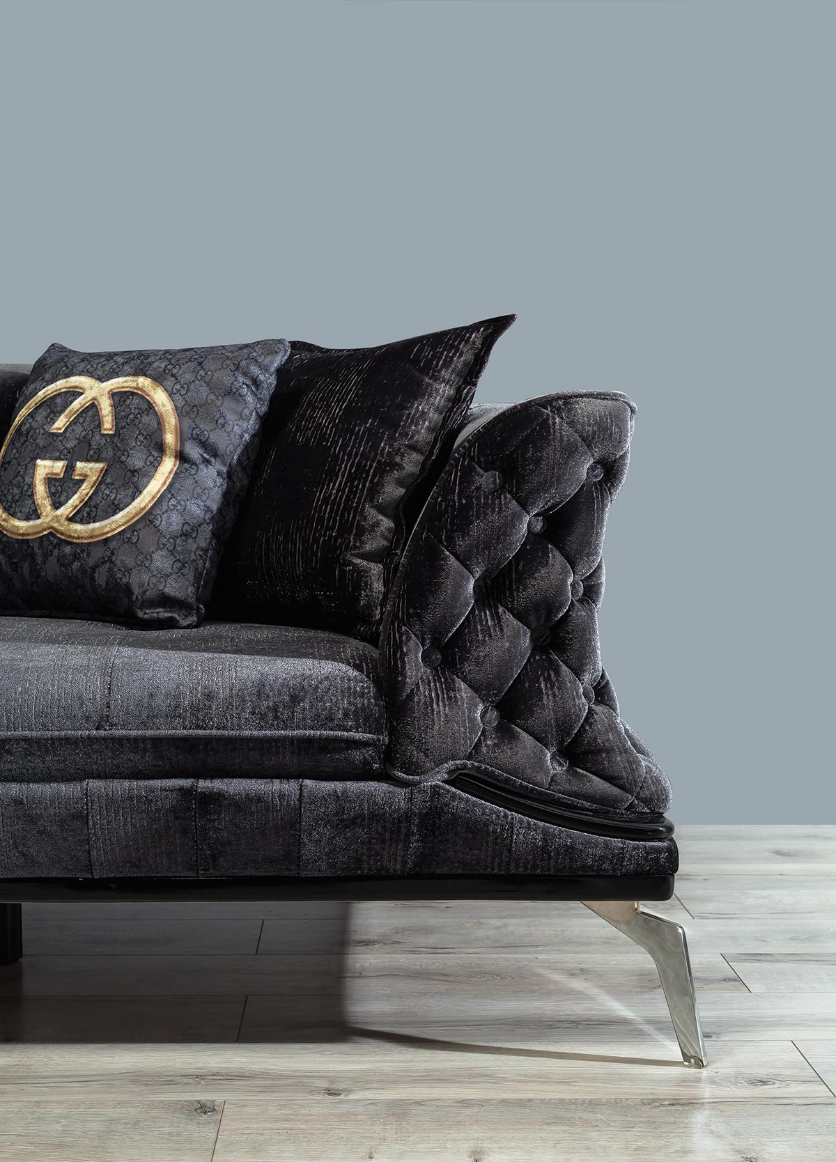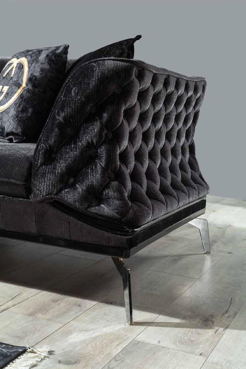 Sofa 3 Sitz Polster Möbel Dreisitzer Couchen schwarz Holz mit Metall