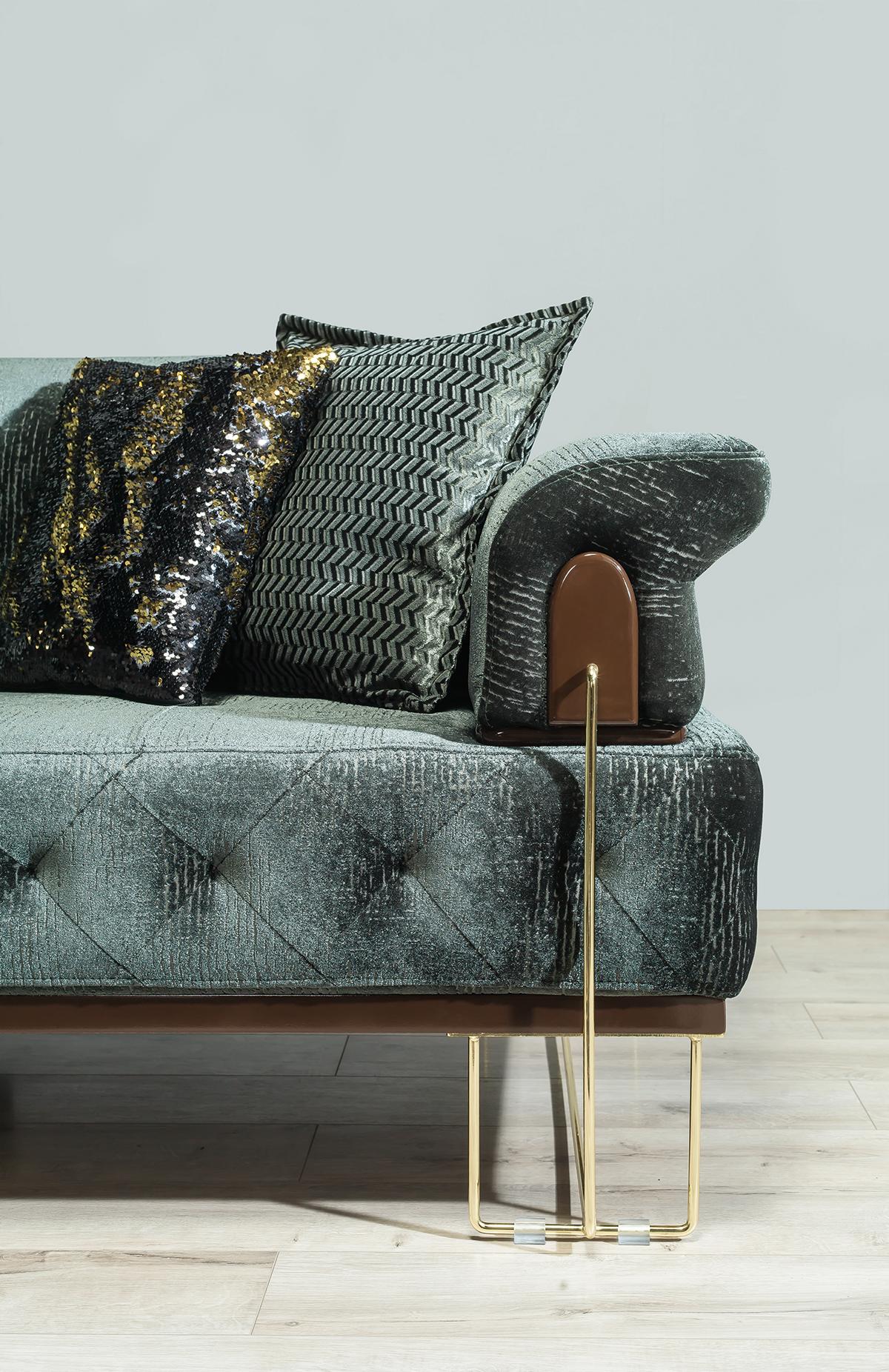 Sofa 3 Sitz Sofas Sitz Design Couch Dreisitzer Luxus Metall mit Textil