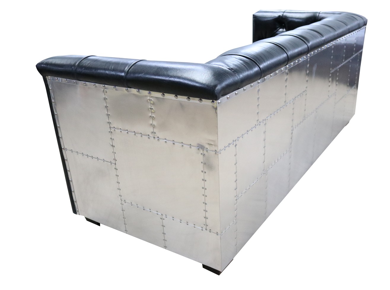 Sofa Chesterfield 3-Sitzer Vintage Flieger Flugzeug Echtleder Aluminium Sofas