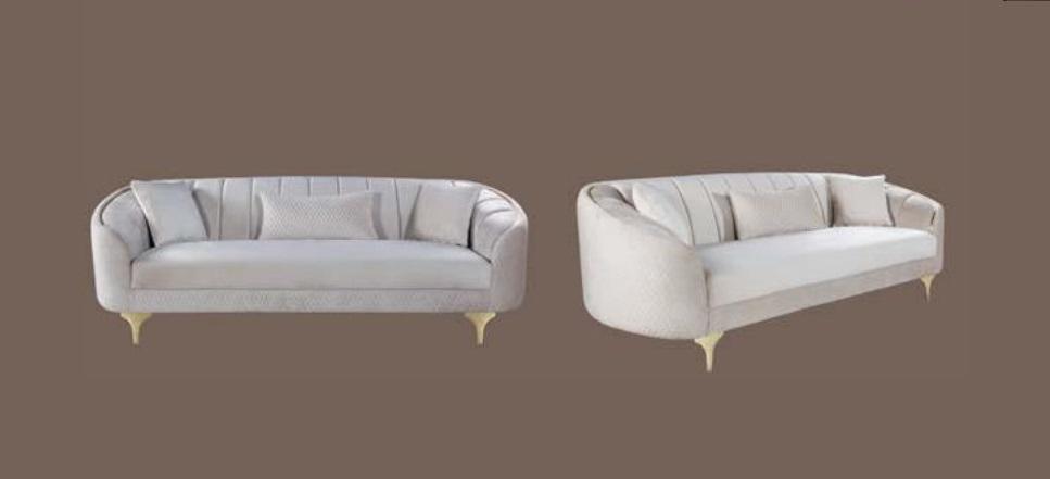 Sofa 3 Sitzer Textil Sofas Couch Polster Möbel Moderner Dreisitzer Beige Samt