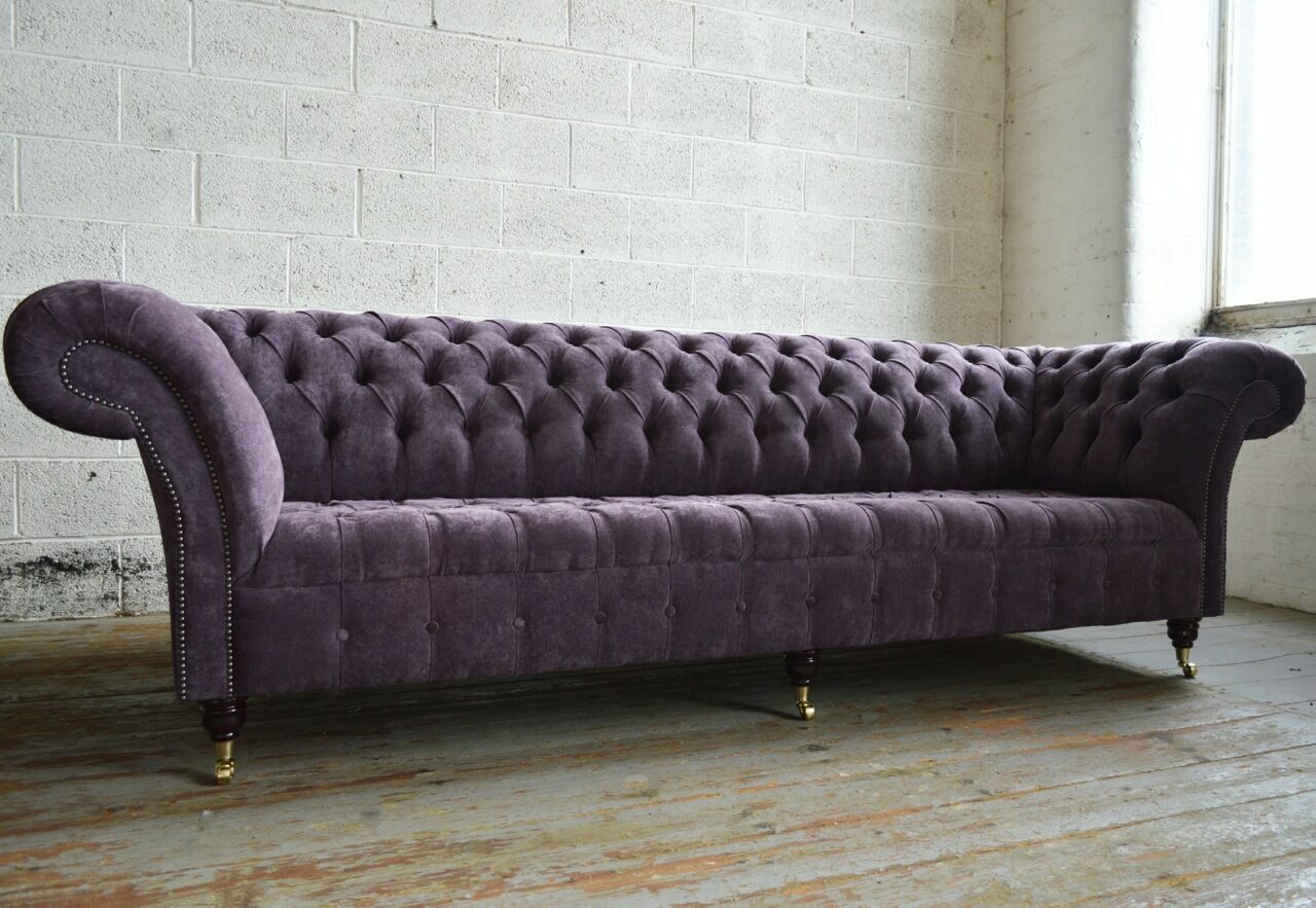 Lila Chesterfield Luxus Couch Sofa Polster 4 Sitzer Couchen Sitz Garnitur