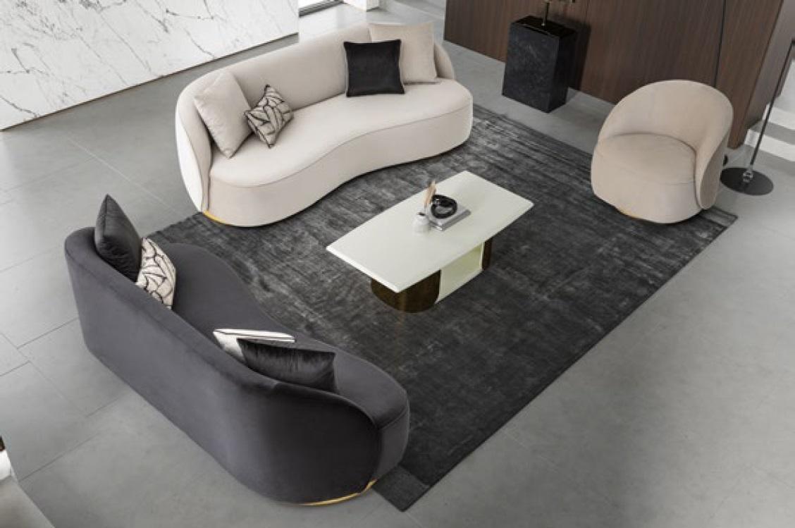 Luxus Couchen Möbel Wohnzimmer Viersitzer Schwarz Textil Möbel Rund 4er