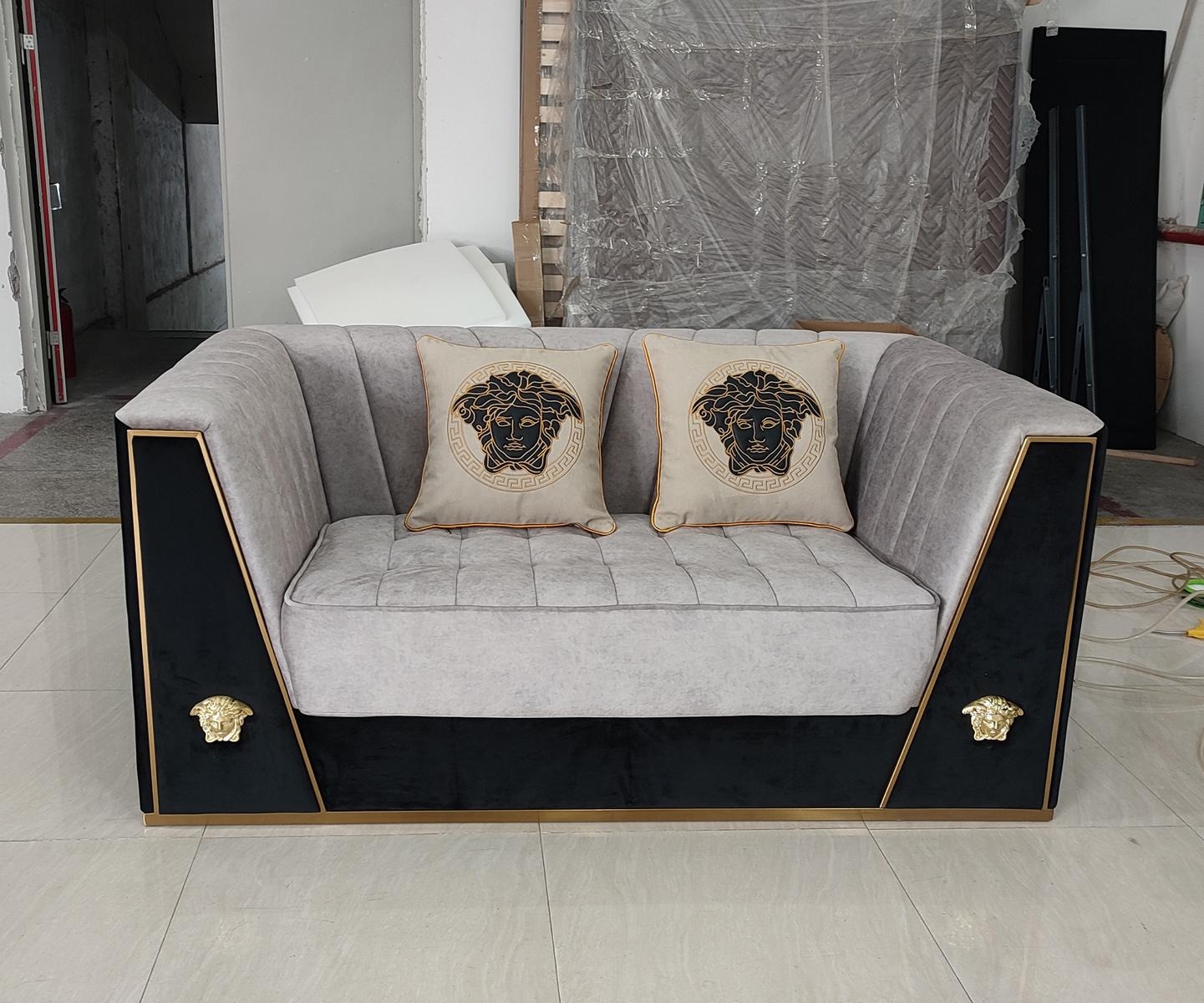 Luxus Sofa 2Sitzer Möbel Design Polster schwarz Textil Samt Sofas Couchen