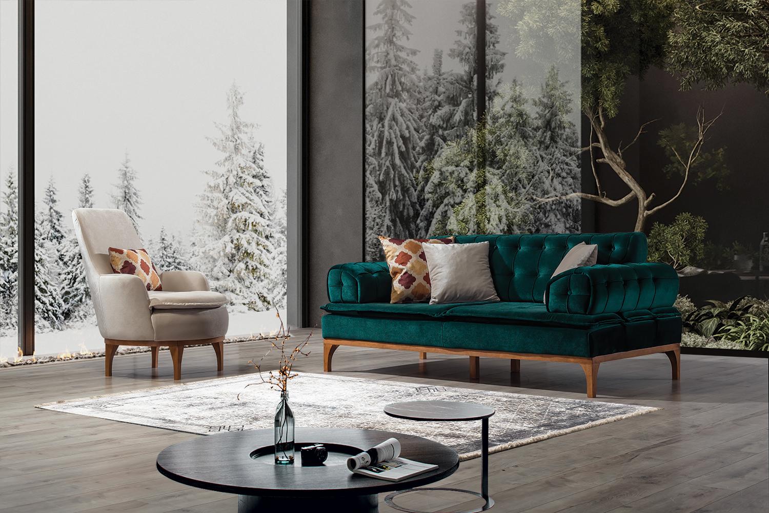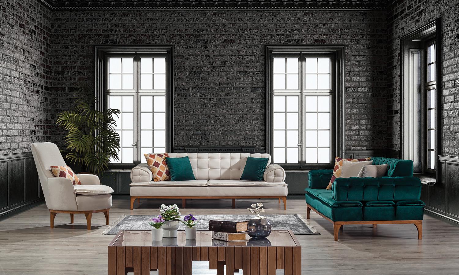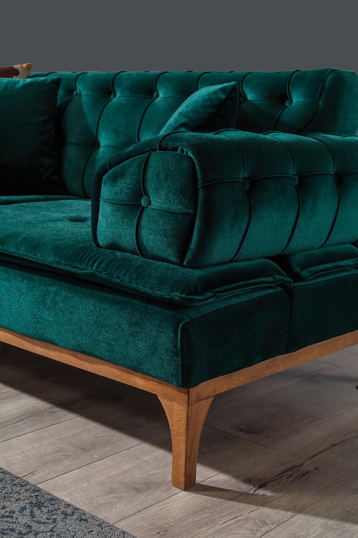 Luxus Sofa 3 Sitzer Sofas Sitz Stoff Design Möbel Stil Textil Neu grün