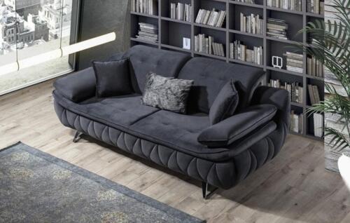 Schwarz 3-Sitzer Wohnzimmer Stoffsofa Modern Deisgn mit Kissen Textil