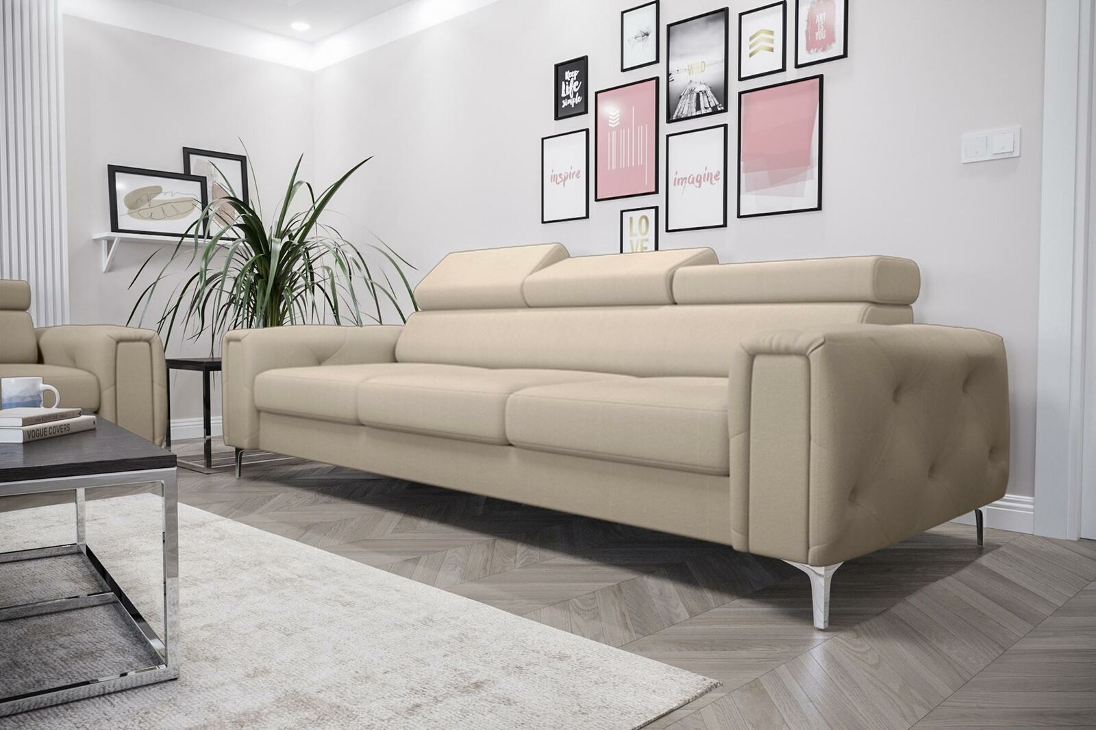 Erwerben Sie jetzt dieses luxuriöse und moderne 3-Sitzer Sofa aus Textil und Leder! Mit seinen Maßen von 255 x 90 x 102 cm bietet es genügend Platz und Komfort für entspannte Stunden zuhause. Wählen Sie aus einer Vielzahl von Farben, darunter Taubengrau, Sonnengelb, Lavendelgrau und mehr, um das Sofa an Ihren Einrichtungsstil anzupassen. Das Material können Sie ebenfalls frei wählen - von Stoff der Gruppe 1 bis zu Premium Kunstleder der Gruppe IV. Das Sofa verfügt über ein Innengestell aus echtem Holz und wird mit Federkern geliefert, für extra Bequemlichkeit. Optional können Sie gegen Aufpreis eine Unterboden LED Beleuchtung erhalten. Holen Sie sich jetzt diesen luxuriösen Dreisitzer für Ihr Zuhause und kreieren Sie eine gemütliche und stilvolle Atmosphäre!