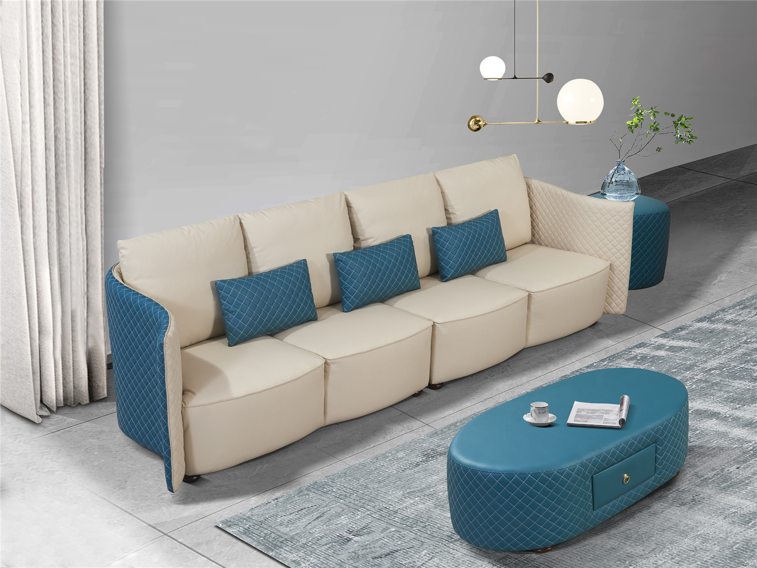 Entdecken Sie Luxus und Stil mit unserem exquisiten 4-Sitzer-Sofa aus hochwertigem Premium-Lederfaserstoff. Dieses Designer-Sofa ist nicht nur ein Blickfang in jedem Wohnzimmer, sondern auch äußerst komfortabel dank seiner großzügigen Maße und der Federkernpolsterung. Mit einer Vielzahl von Farboptionen zur Auswahl, darunter trendige Grüntöne, klassische Blau- und Grautöne sowie lebendige Farben wie Türkis und Azurblau, können Sie dieses Sofa ganz nach Ihrem Geschmack individualisieren. Hergestellt aus italienischem Rindsleder und mit einem echten Holzinnengestell versehen, vereint dieses Luxussofa Eleganz mit Qualität. Optional können Sie zwischen verschiedenen Materialgruppen wählen, darunter Premium-Echtleder und Textilstoffe, um das Sofa Ihren Wünschen anzupassen. Erleben Sie den Luxus eines 4-Sitzer-Sofas, das nicht nur Ihr Zuhause verschönert, sondern auch ein Ort der Entspannung und des Stils ist. Holen Sie sich noch heute Ihr Traumsofa und genießen Sie Komfort und Eleganz in einem Möbelstück!
