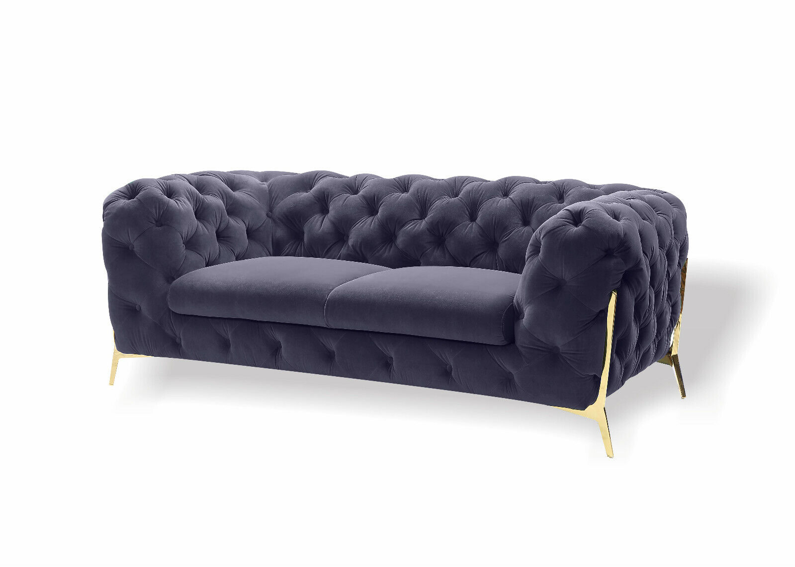 Chesterfield Samt Designer Sofa 2 Sitzer Couch Textil Samt Garnitur Gold Beine