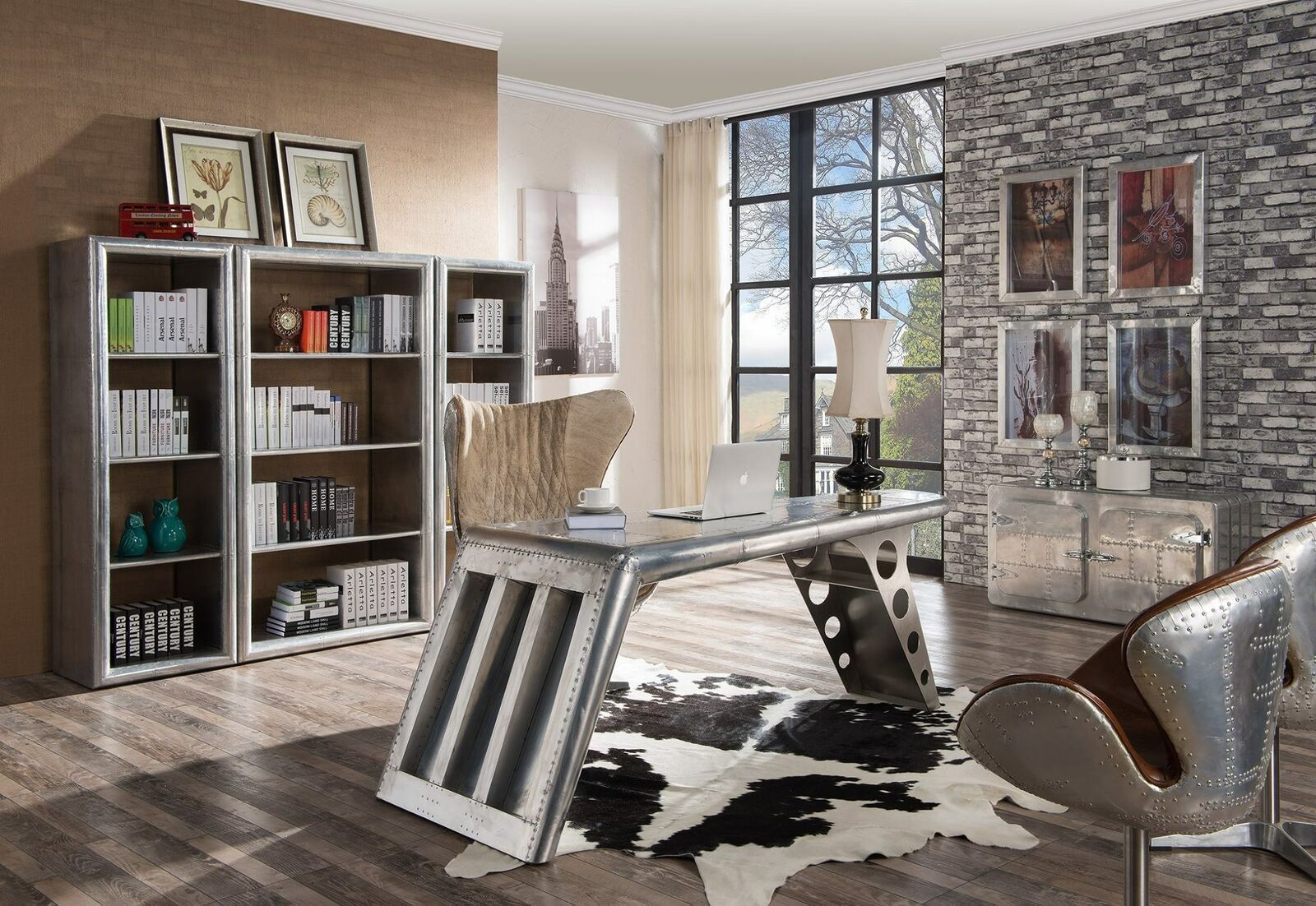 Richten Sie Ihr Büro stilvoll ein mit diesem 8-teiligen Set von XL Moebel! Das Set umfasst einen geräumigen Schreibtisch, zwei elegante Wandregale, eine praktische Kommode und vier bequeme Sessel. Die Maße sind perfekt für Ihr Arbeitszimmer und sorgen für eine angenehme Arbeitsumgebung. Wählen Sie aus einer Vielzahl von Farben wie Schwarz, Dunkelbraun, Weiß, Antikgrün, Antik-Dunkelbraun und Bordaux-Rot. Die Möbel bestehen aus hochwertigem Aluminium und Leder, was für Langlebigkeit und Komfort sorgt. Machen Sie Ihr Büro zu einem Ort, an dem Sie gerne arbeiten!