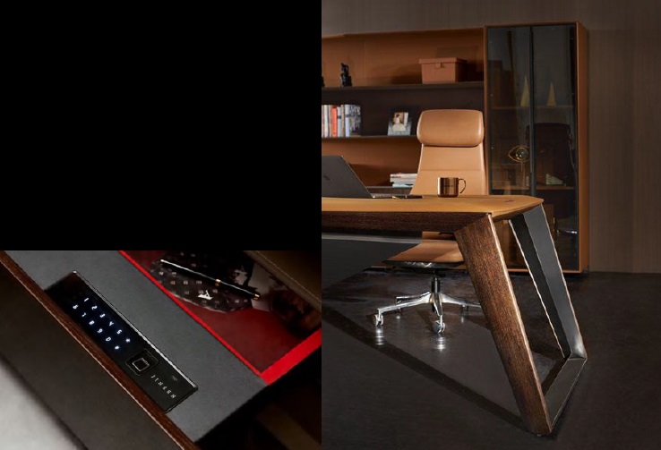 MDF + NubukLeder, MDF + Furnier, Edelstahl+ Passwortsperre