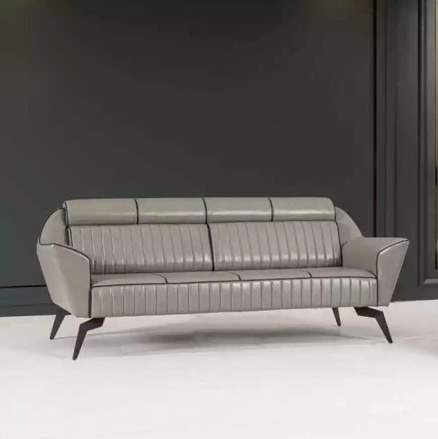 Grauer Leder Dreisitzer Arbeitszimmermöbel Designer Holzmöbel Luxus