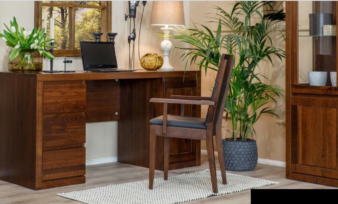 Büro set garnitur einrichtung tisch + sessel massiv holz möbel eiche vollholz