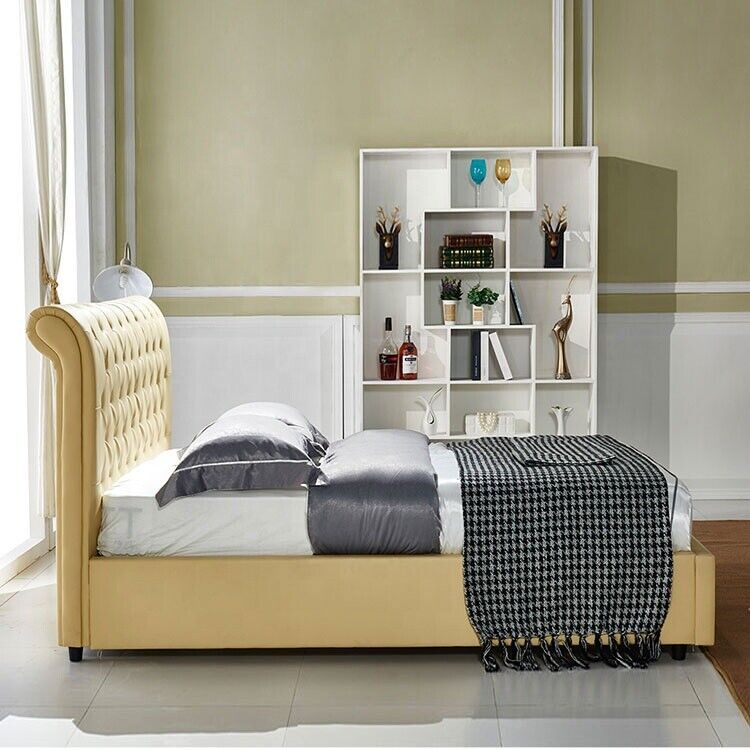 Beige Chesterfield Bett Design Schlafzimmer Englisches Betten Textil Polster