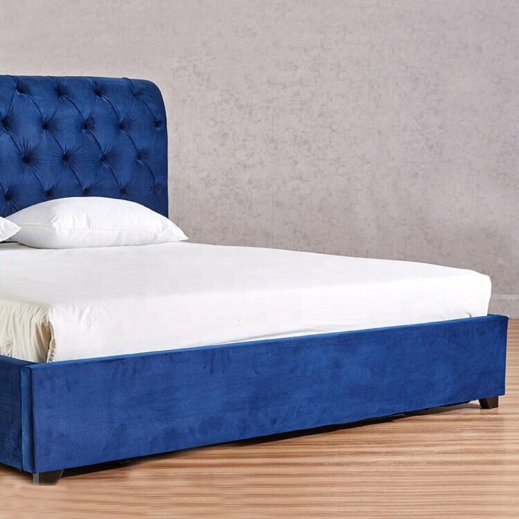 Blaues Chesterfield Doppelbett Schlafzimmer Luxus Möbel Polster Betten