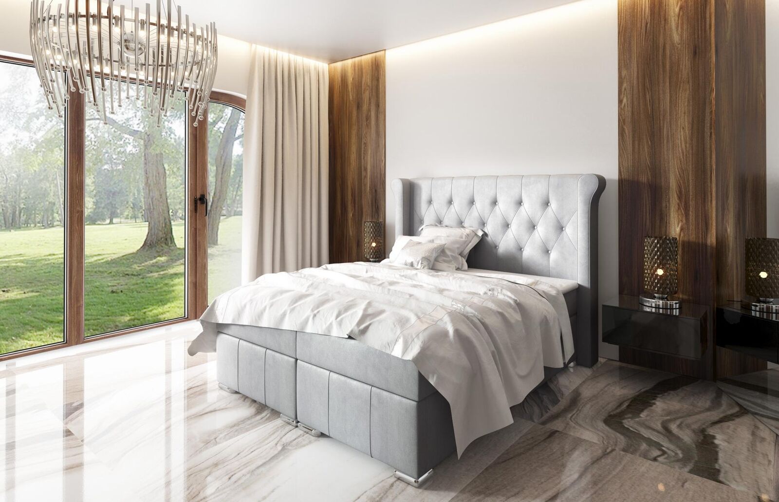 Holen Sie sich das ultimative Chesterfield Bett + Bettkasten Boxspring Bett für Ihr Schlafzimmer! Dieses hochwertige Bett wird aufwändig gefertigt und bietet Ihnen Komfort und Stil zugleich. Mit einer Liegefläche von ca. 160 x 200 cm, 2 Bettkästen und einer Hauptmatratze aus hochflexiblem Schaumstoff werden Sie jede Nacht wie auf Wolken schlafen. Der Topper aus Hochflexibler Schaumstoff sorgt für zusätzlichen Komfort, während das gesteppte Kopfteil mit Polsterknöpfen dem Bett einen eleganten Touch verleiht. Der Bettkasten lässt sich dank des Automaten auf Federn mühelos öffnen und bietet extra Stauraum für Ihre Bettwäsche oder andere Utensilien. Sie haben die Möglichkeit, die Farbe des Bettes frei zu wählen sowie das Material, entweder Stoff oder Premium Kunstleder. Optional sind auch andere Liegeflächen-Größen verfügbar, um Ihre persönlichen Bedürfnisse zu erfüllen. Bringen Sie Luxus in Ihr Schlafzimmer mit diesem Chesterfield Bett, das nicht nur im Hotel, sondern auch zu Hause eine exklusive Atmosphäre schafft. Bestellen Sie jetzt und genießen Sie erholsame Nächte in Ihrem neuen Traumbett!