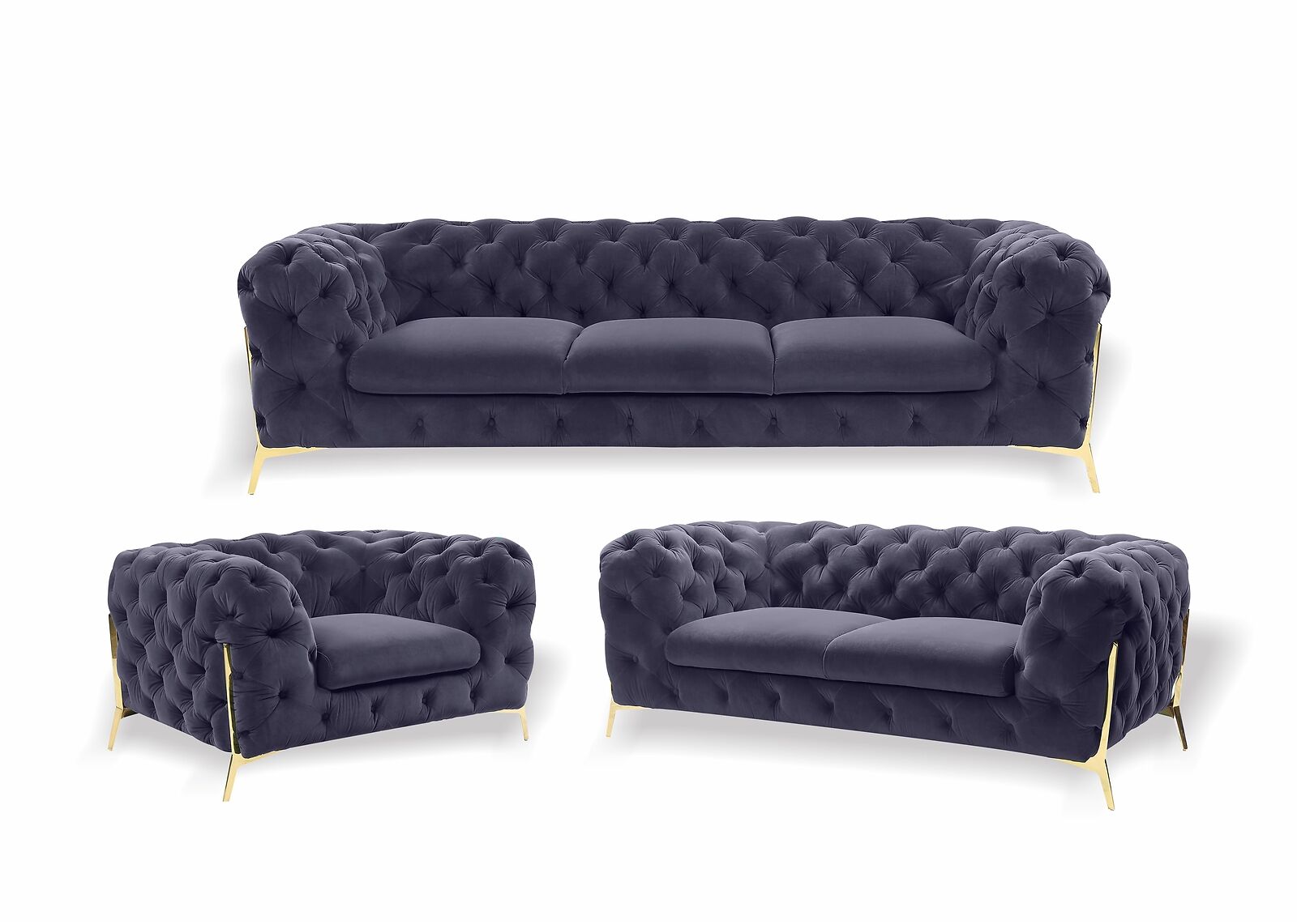 Chesterfield Couch Polster Sitz Garnitur 3+1+1 Sitzer Samt Designer Couchen Neu