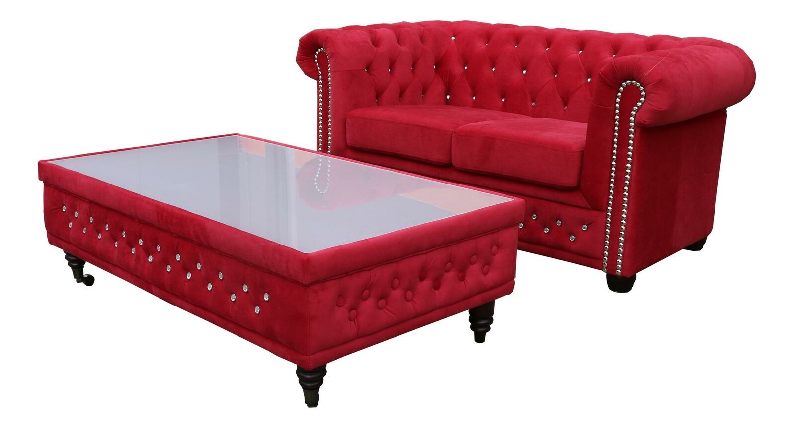 Chesterfield Textil Couch Polster 2 Sitzer Stoff Sofas Couchen Zweisitzer Rot