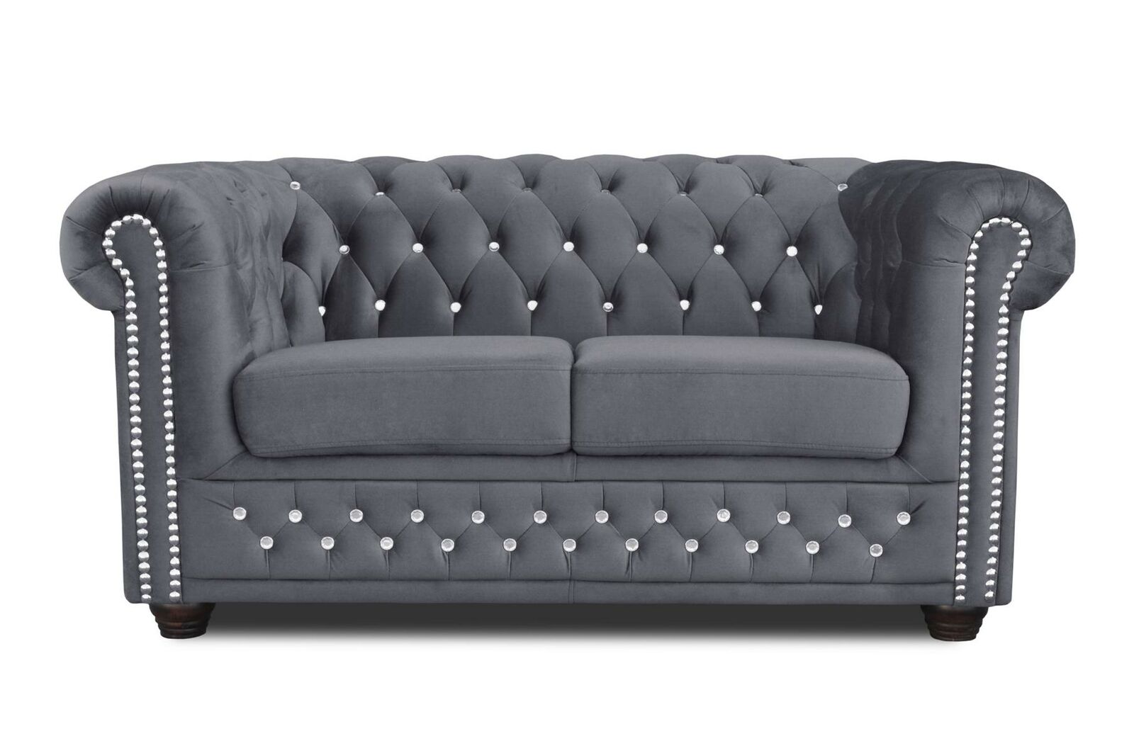 Chesterfield Textil Couch Polster 2Sitzer Sofas Couchen schwarze Zweisitzer Neu