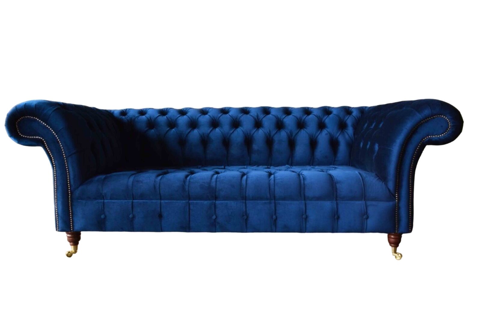 Entdecken Sie Luxus und Eleganz mit unserem blauen Chesterfield Dreisitzer Sofa aus hochwertigem Textil und Holz! Mit einer Größe von ca. 230 x 80 x 90 cm bietet dieses Sofa nicht nur Komfort, sondern auch Stil in Ihrem Wohnraum. Kunden haben die Möglichkeit, die Farbe des Sofas frei zu wählen. Zudem können Sie zwischen verschiedenen Materialoptionen wie Premium Kunstleder, Premium Echtleder, Premium Samtstoff oder dem fleckenabweisenden Magic Home Stoff wählen. Das Innengestell aus echtem Holz und der Federkern sorgen für Stabilität und Bequemlichkeit. Optional sind auch weitere Größen wie 5-Sitzer, 4-Sitzer, 2-Sitzer und 1-Sitzer erhältlich. Maßanfertigungen sind auf Anfrage möglich. Investieren Sie in ein exklusives Stück für Ihr Zuhause und wählen Sie zwischen Knöpfen, Kristallsteinen oder echten Swarovski Kristallsteinen für die Verzierung. Erleben Sie Luxus pur mit unserem Chesterfield Dreisitzer Sofa!