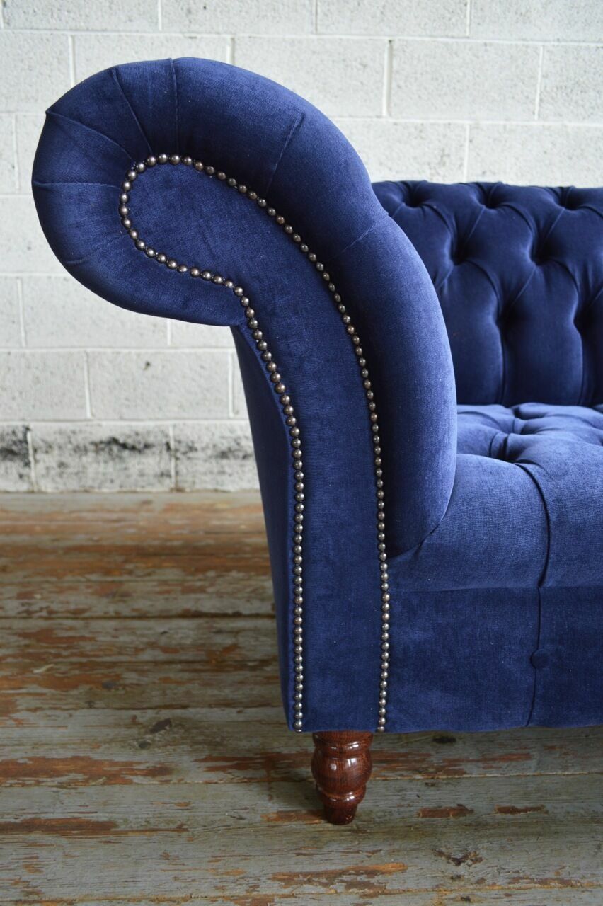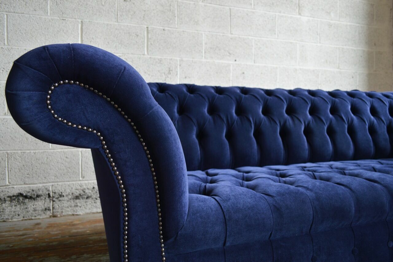 Blaue Chesterfield Sofa Couch Design Polster Sofas Couchen Stoff Textil Leder
