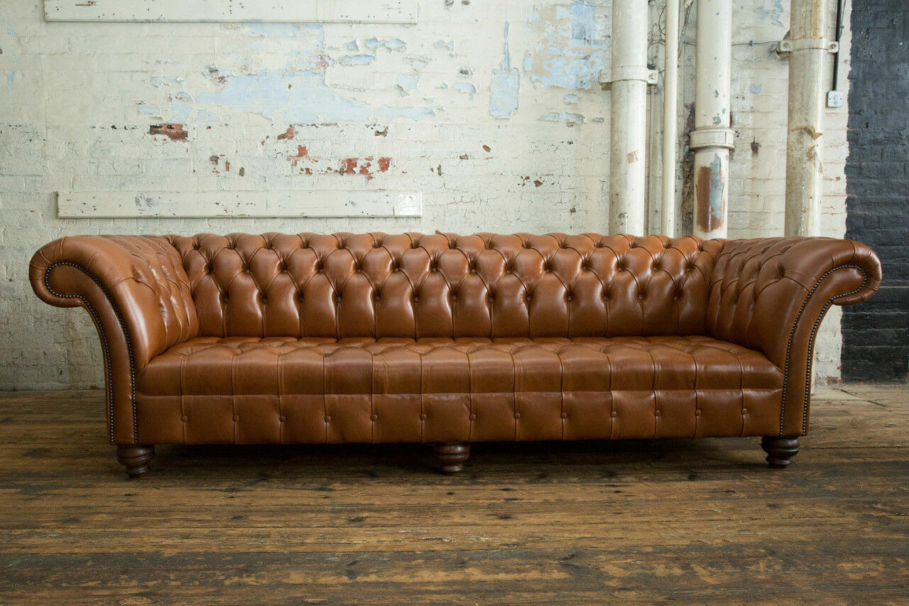 Braune Chesterfield Couch Leder 4 Sitzer xxl Big Sofa Couchen Big Neu Polster