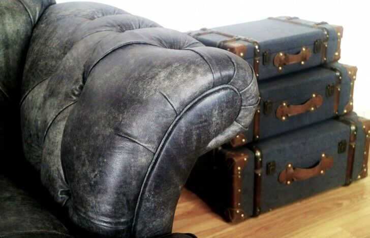 Chesterfield Big Xxl Couch % Leder Schwarzer 3-Sitzer Vintage-Stil