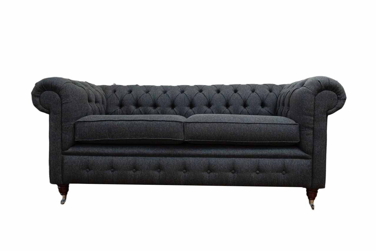 Chesterfield Couch Polster Möbel Zweisitzer Couchen Sofas Stoff Grau