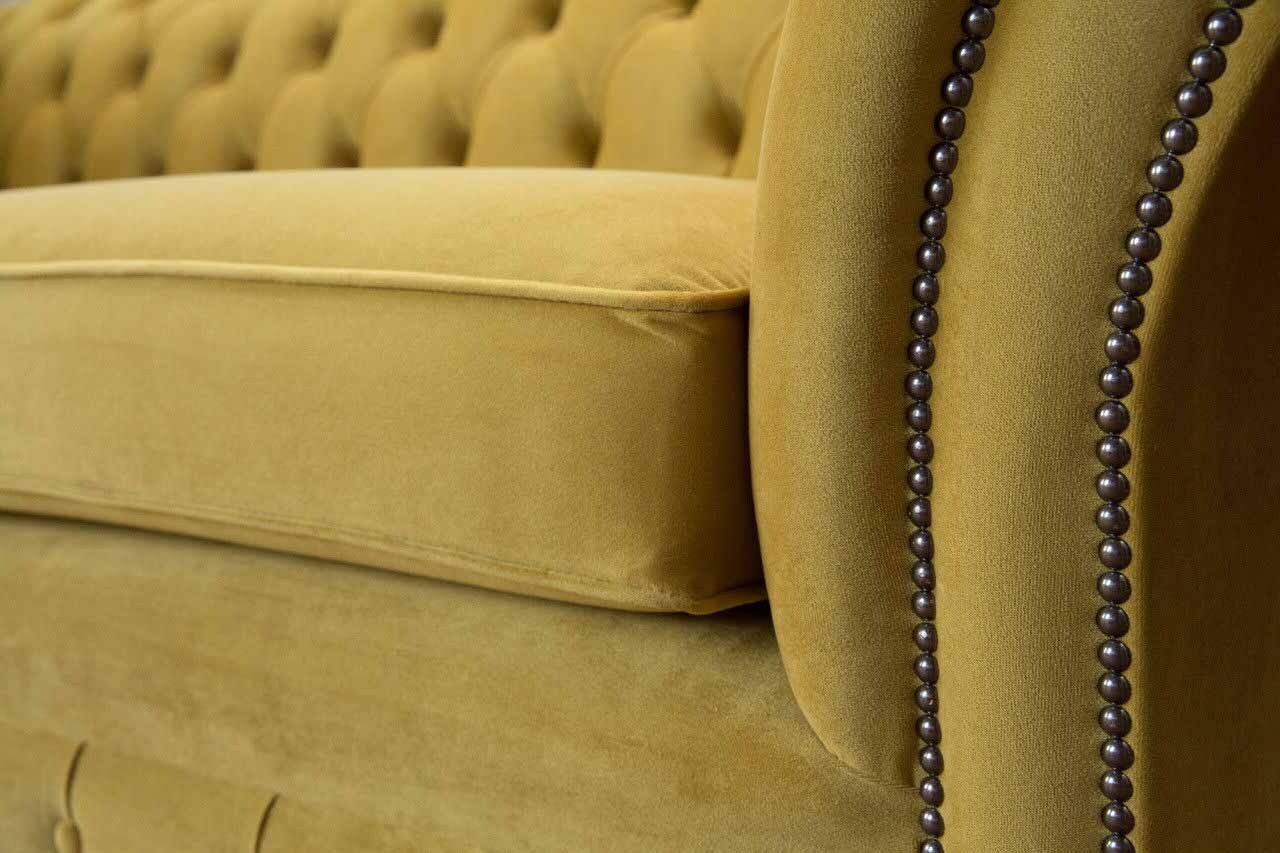 Entdecken Sie Luxus und Stil mit unserem Chesterfield Sofa 3 Sitz Design Couch Dreisitzer! Mit Maßen von ca. 230 x 80 x 90 cm bietet dieses hochwertige Möbelstück Komfort und Eleganz in Ihrem Wohnraum. Die Sitzhöhe beträgt ca. 42 cm und die Sitztiefe ca. 52 cm, sodass Sie sich entspannt zurücklehnen können. Wählen Sie aus einer Vielzahl von Farben wie Braun, Grün, Schwarz, Blau, und vielem mehr. Das Sofa ist aus Textil und Holz gefertigt, und Sie haben optional die Möglichkeit, zwischen verschiedenen Materialien wie Premium Kunstleder, Premium Echtleder, Premium Samt Stoff oder Magic Home (Fleckenabweisender Stoff) zu wählen. Außerdem bieten wir Ihnen die Option, die Größe anzupassen, ob 5-Sitzer, 4-Sitzer, 3-Sitzer, 2-Sitzer oder 1-Sitzer. Oder Sie können eine Sondergröße / Maßanfertigung auf Anfrage erhalten. Dieses Sofa besticht durch Details wie Kristallsteine anstelle von normalen Knöpfen und ein Innengestell aus echtem Holz mit Federkern für noch mehr Komfort und Langlebigkeit. Erleben Sie Luxus und Individualität mit unserem Chesterfield Sofa 3 Sitz Design Couch Dreisitzer - Gestalten Sie Ihren Wohnraum nach Ihren persönlichen Vorlieben!