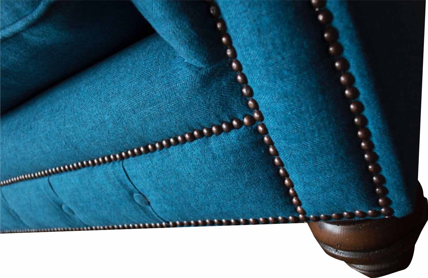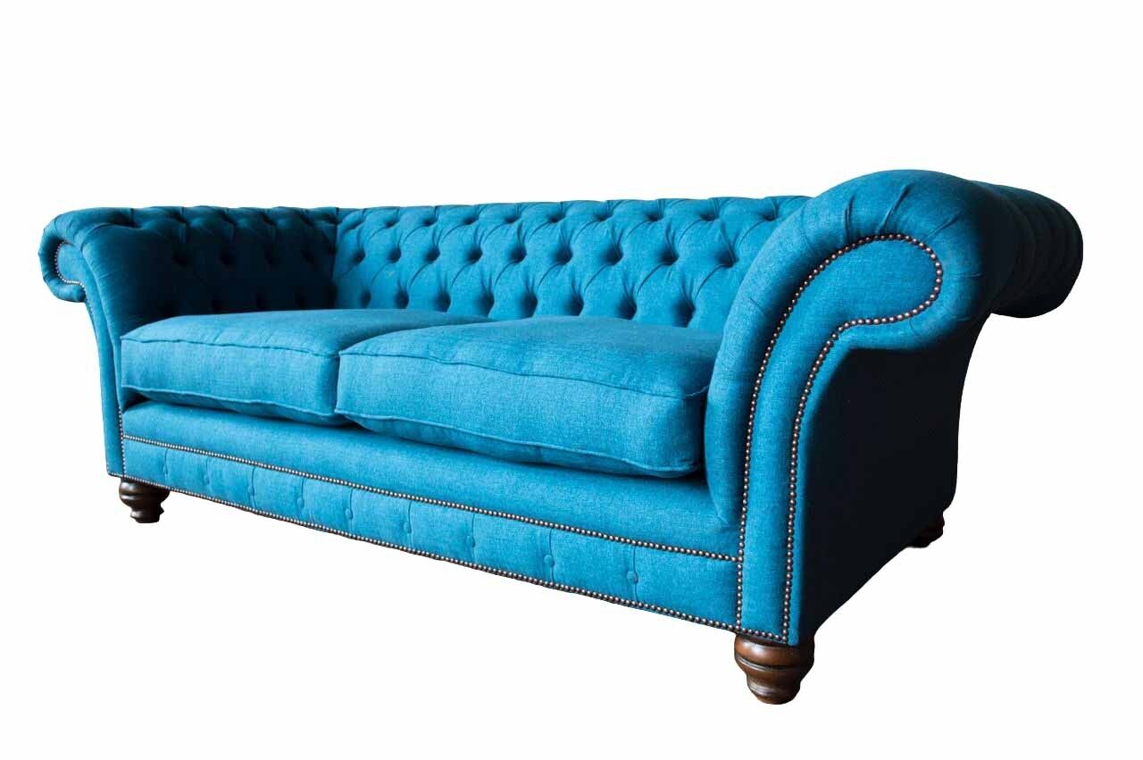 Chesterfield Sofa 3 Sitzer Couch Polster Sofas Stoff Wohnzimmer Blau Textil