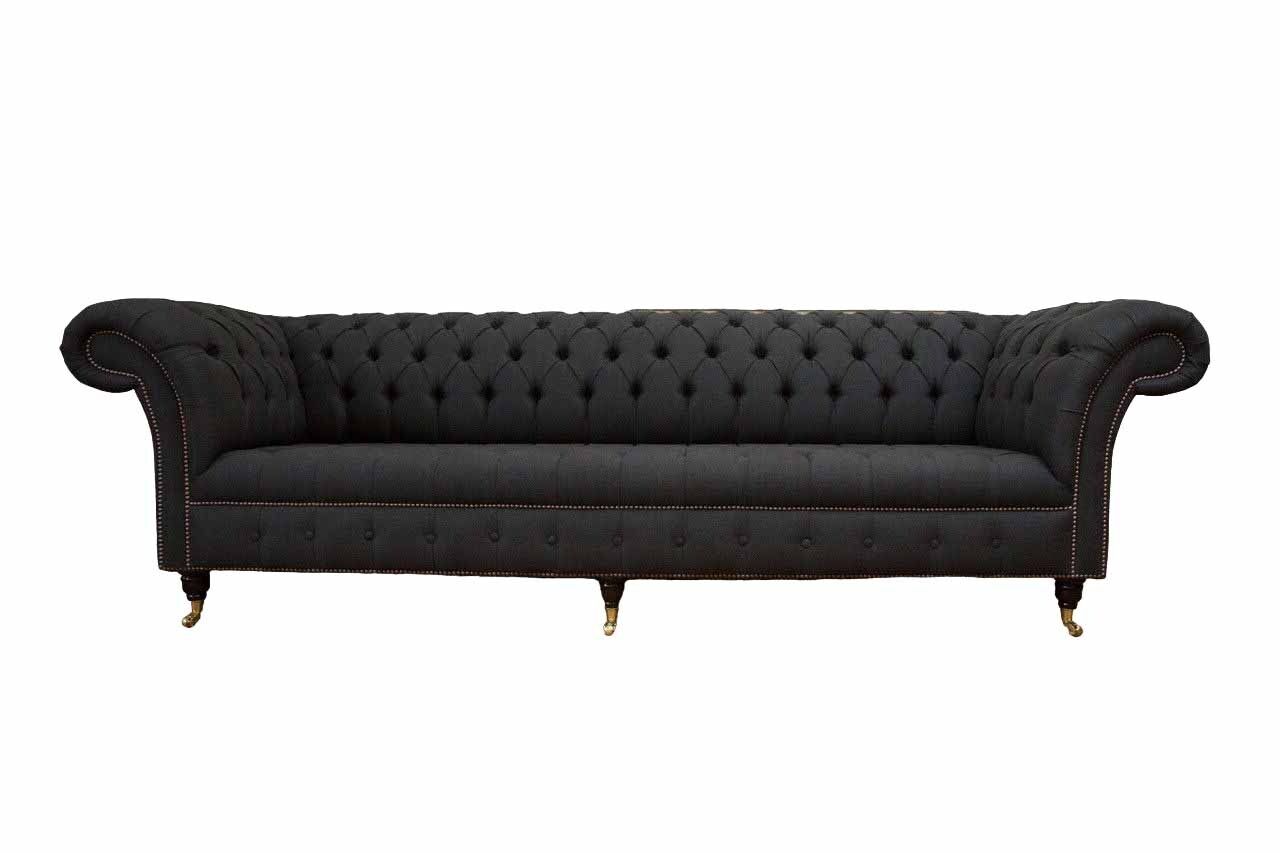 Chesterfield Sofa 4 Sitzer Schwarz Stoff Wohnzimmer Design Couch Polster
