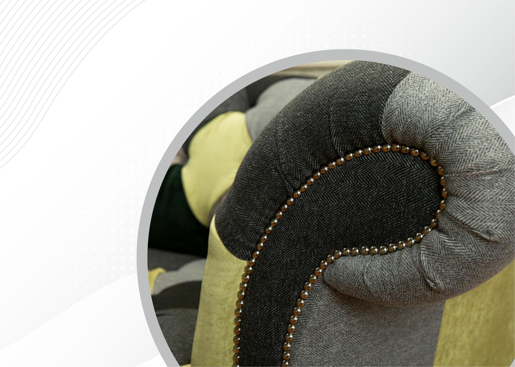 Entspannen Sie in Stil und Komfort mit unserem Chesterfield Sofa Couch Polster Sofas Klassiker, einem klassischen 2-Sitzer aus hochwertigem Textil in Ihrer Wunschfarbe! Mit Maßen von ca. 185cm x 98cm x 79cm und einer Sitzhöhe von ca. 44cm bietet dieses Sofa die perfekte Kombination aus Stil und Bequemlichkeit. Mit der Möglichkeit, aus einer Vielzahl von Farben und Materialien zu wählen, können Sie Ihr Sofa ganz nach Ihren persönlichen Vorlieben gestalten. Erweitern Sie Ihr Wohnzimmer mit optionalen weiteren Größen wie einem 5-Sitzer, 4-Sitzer, 3-Sitzer oder auch einem 1-Sitzer - wir bieten Ihnen auch die Möglichkeit einer Sondergröße oder Maßanfertigung auf Anfrage an. Genießen Sie Premium-Kunstleder/Stoff oder Premium-Echtleder für eine edle Optik. Wählen Sie Premium-Samtstoff für ein luxuriöses Gefühl oder entscheiden Sie sich für den Magic Home Stoff für zusätzlichen Fleckenschutz. Mit einem Innengestell aus echtem Holz und Federkern bietet dieses Sofa nicht nur Stil, sondern auch Qualität und Komfort. Veredeln Sie Ihr Chesterfield Sofa mit farblich passenden Knöpfen oder gönnen Sie sich den Luxus von Kristallsteinen oder sogar echten Swarovski Kristallsteinen. Erleben Sie Luxus und Individualität - gestalten Sie Ihr perfektes Chesterfield Sofa mit uns!