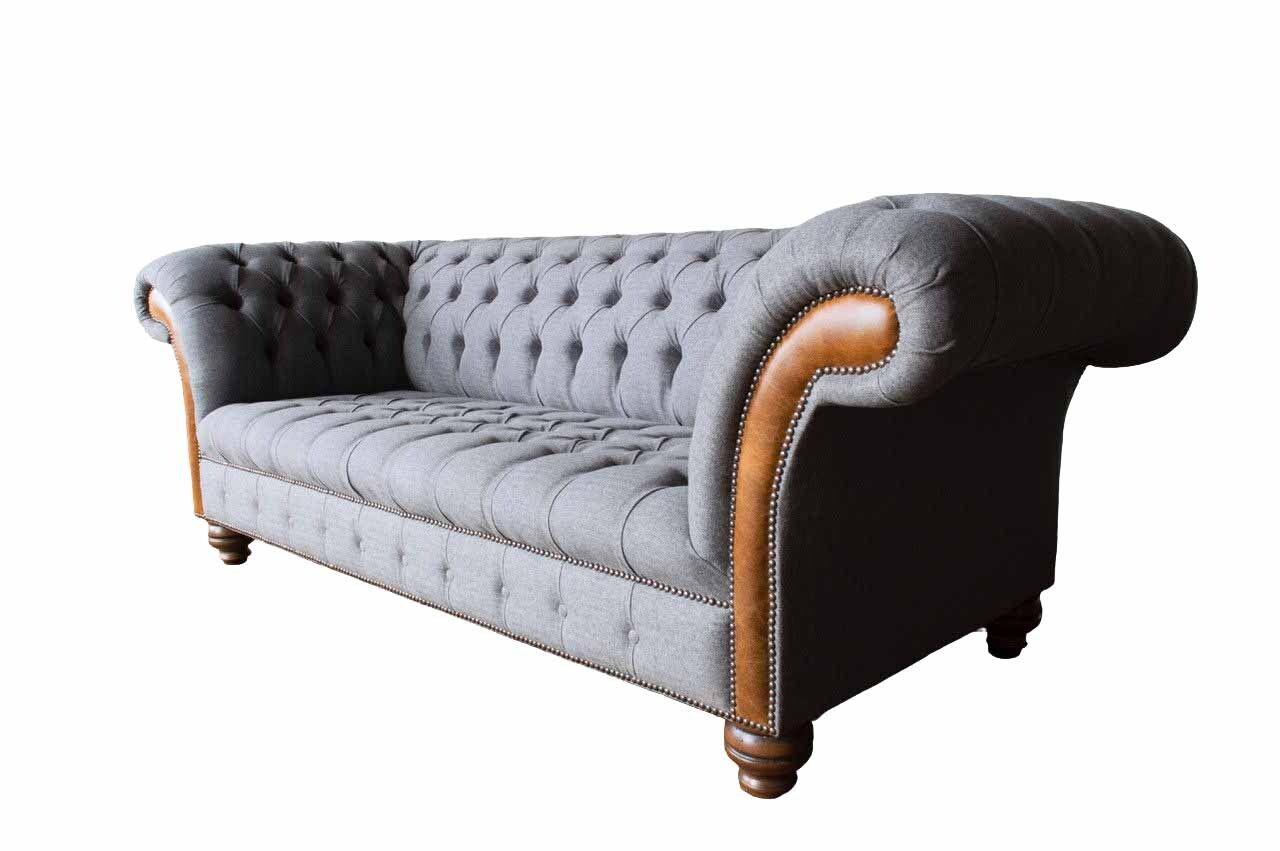 Chesterfield Stoffsofa Luxus Sofa Polster Couch Sitz Grau Textil