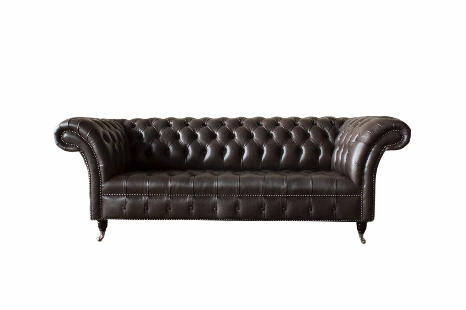 Entdecken Sie Luxus und Eleganz mit unserem Dreisitzer Chesterfield Sofa aus braunem Leder. Dieses exklusive Wohnzimmermöbel ist ein wahres Highlight in jedem Raum. Mit Maßen von ca. 230 x 80 x 90 cm bietet das Sofa genügend Platz zum Entspannen. Die Sitztiefe von ca. 52 cm und die Sitzhöhe von ca. 42 cm sorgen für optimalen Komfort. Sie haben die Möglichkeit, aus einer Vielzahl von Farben zu wählen, darunter Braun, Grün, Schwarz, Blau, und weitere. Zudem können Sie das Material des Sofas individuell anpassen, ob Kunstleder, Samt, oder Echtleder. Das Innengestell aus echtem Holz und der Federkern garantieren Langlebigkeit und Komfort. Optional können Sie das Sofa in verschiedenen Größen bestellen, von 1-Sitzer bis 5-Sitzer. Sogar Sondergrößen sind auf Anfrage möglich. Verleihen Sie Ihrem Sofa eine persönliche Note, indem Sie zwischen Knöpfen, Kristallsteinen oder echten Swarovski Kristallsteinen wählen. Entdecken Sie jetzt unser hochwertiges Chesterfield Sofa und gestalten Sie Ihre Wohnlandschaft nach Ihren Wünschen. Luxus und Komfort vereint in einem exklusiven Möbelstück.