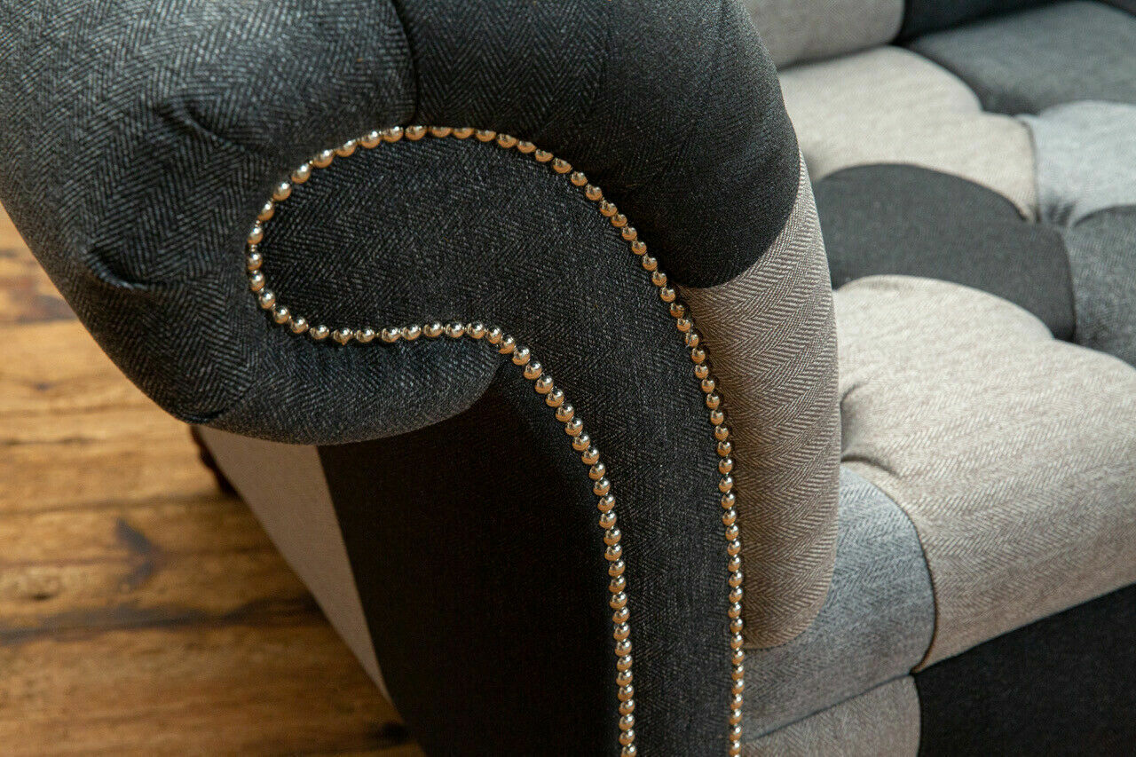 Entdecken Sie das elegante 3-Sitzer Sofa "Chesterfield" aus hochwertigem Textil, das Ihrem Wohnzimmer einen Hauch von Luxus verleiht. Mit Maßen von ca. 225 x 79 x 98 cm und einer bequemen Sitzhöhe von ca. 42 cm lädt dieses Sofa zum Entspannen ein. Dank der vielfältigen Anpassungsmöglichkeiten haben Sie die Freiheit, die Farbe und das Material nach Ihrem Geschmack zu wählen. Wählen Sie zwischen Premium Kunstleder, echtem Rindsleder aus Italien oder dem luxuriösen Premium Samt Stoff. Sogar die Verzierung mit funkelnden Kristallsteinen ist möglich, um Ihrem Sofa eine einzigartige Note zu verleihen. Das Innengestell aus echtem Holz und der komfortable Federkern sorgen für Stabilität und Bequemlichkeit. Gestalten Sie Ihr Traumsofa ganz nach Ihren Wünschen und lassen Sie es zu einem Blickfang in Ihrem Zuhause werden. Gönnen Sie sich den Komfort und die Eleganz, die Sie verdienen - mit dem Chesterfield Sofa!
